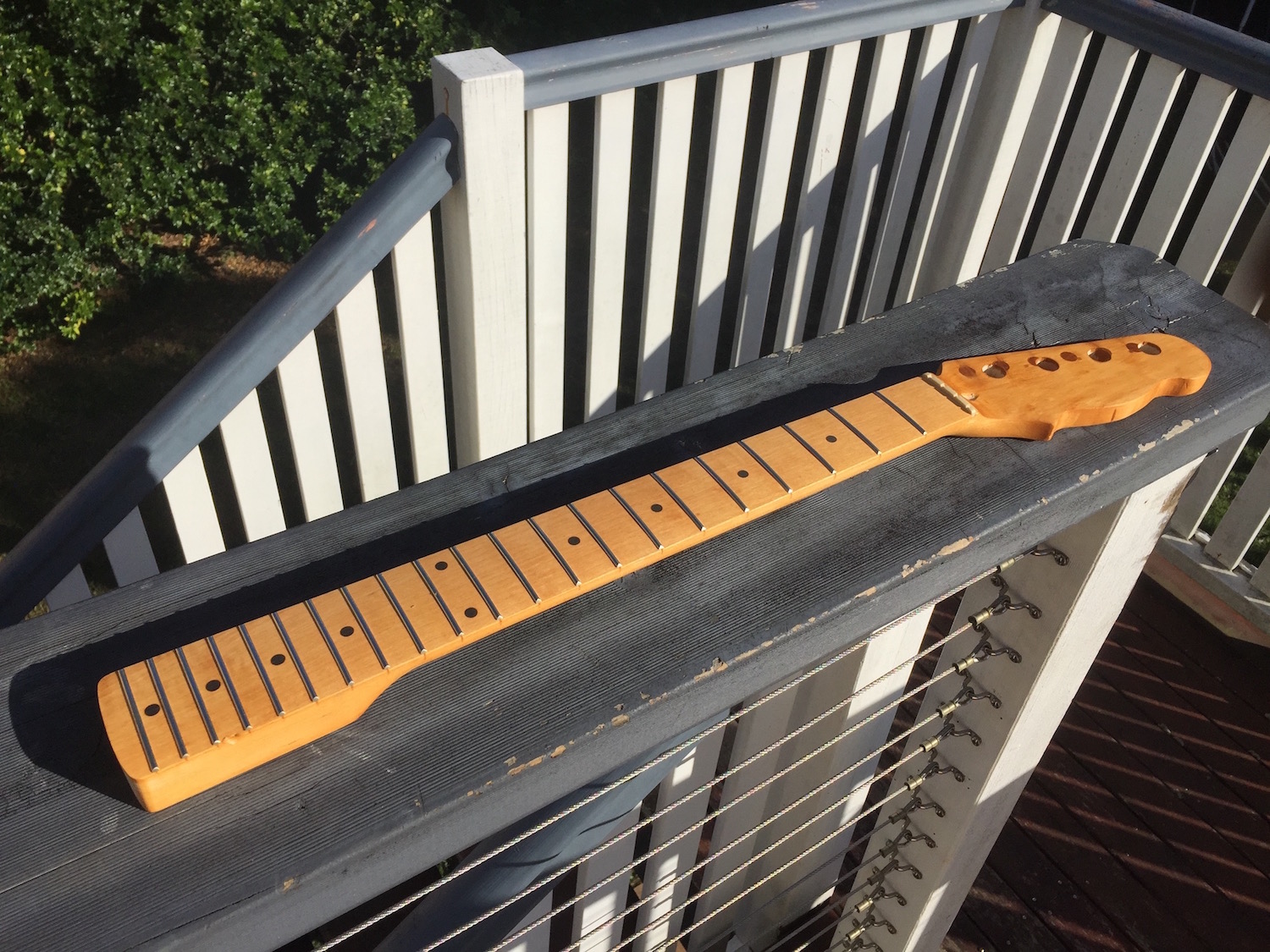 Once the drilling was complete, we then ferreted around for some old stain so we could add some colour to the anemic neck.