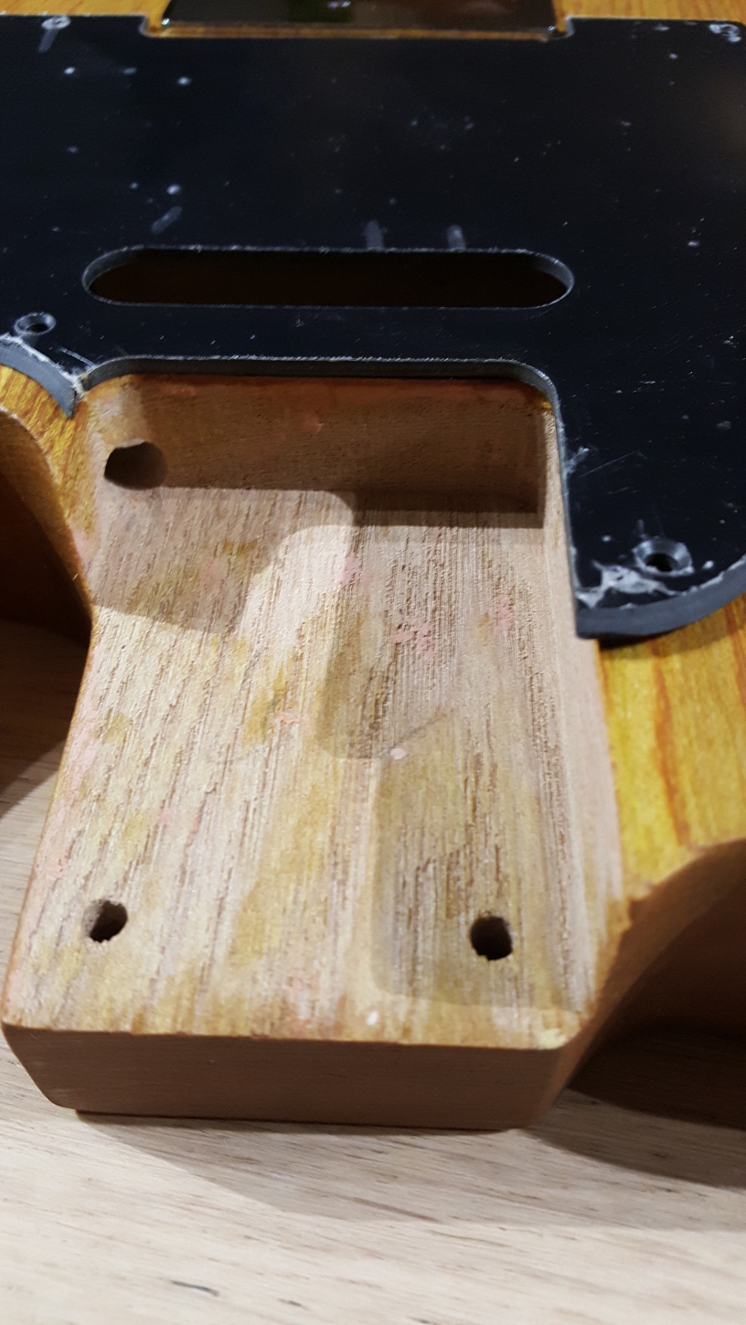 looking great so far Ganna, as Dedman said the earth wire goes through the hole under the bridge, to the bridge pup cavity to the control cavity.