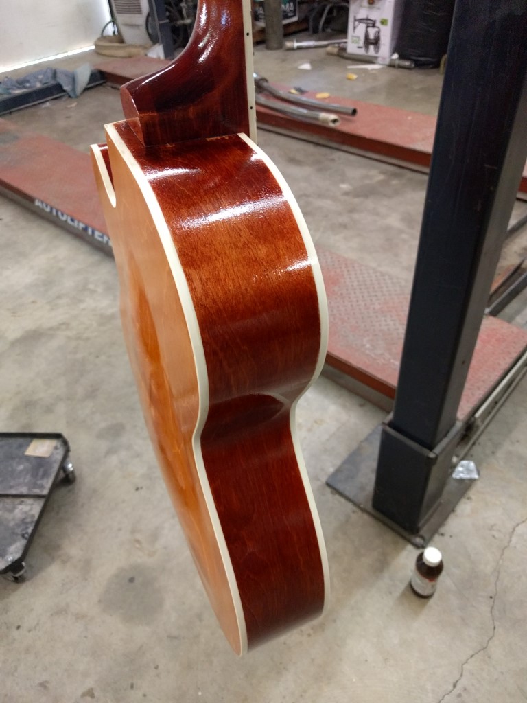 It's really starting to shine! We're finally getting the grain filled and starting to get a nice gloss. Obviously many more coats are needed, but we'll keep at it.