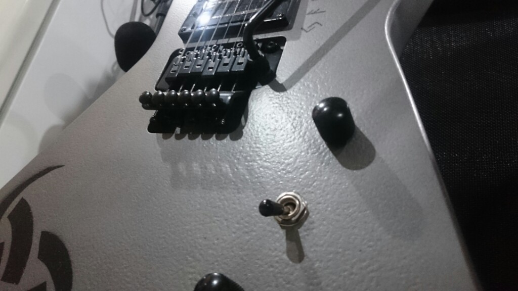 I made the pickguard and trussrod cover from acrylic sheet with a glitter foil on the pickguard and adhesive letters from Michael's craft stores on the trussrod cover. Then I coated the trussrod cover in resin to protect the lettering. The name is a tip of the hat to Robert Fripp and the BachenRicker guitar company, who are both yuge in my book. I know Mr Fripp plays Les Pauls, but I just like the way the name worked out.