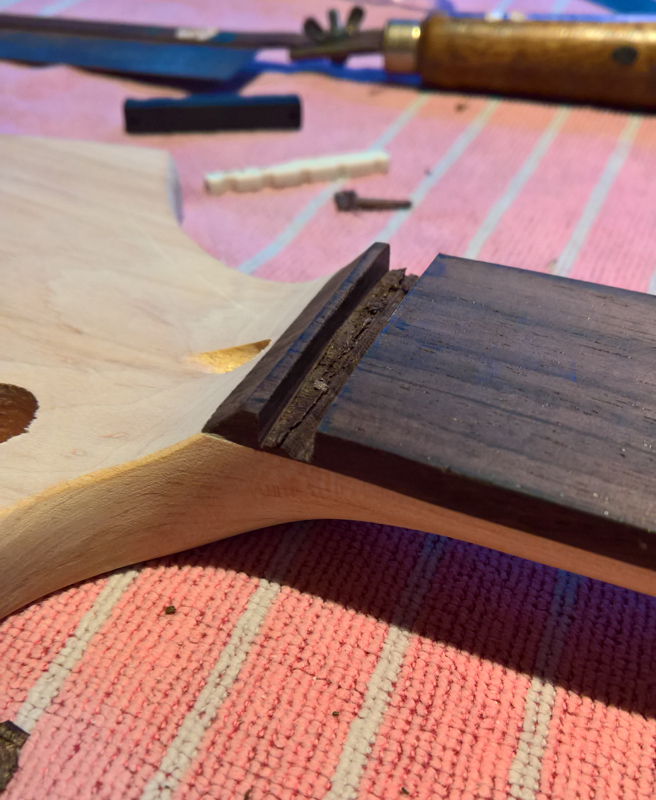 The nut that came on the neck in the kit had the strings set pretty high (about 2mm) and needed to be lowered, so I figured that I'd need to do something about it. :confused: