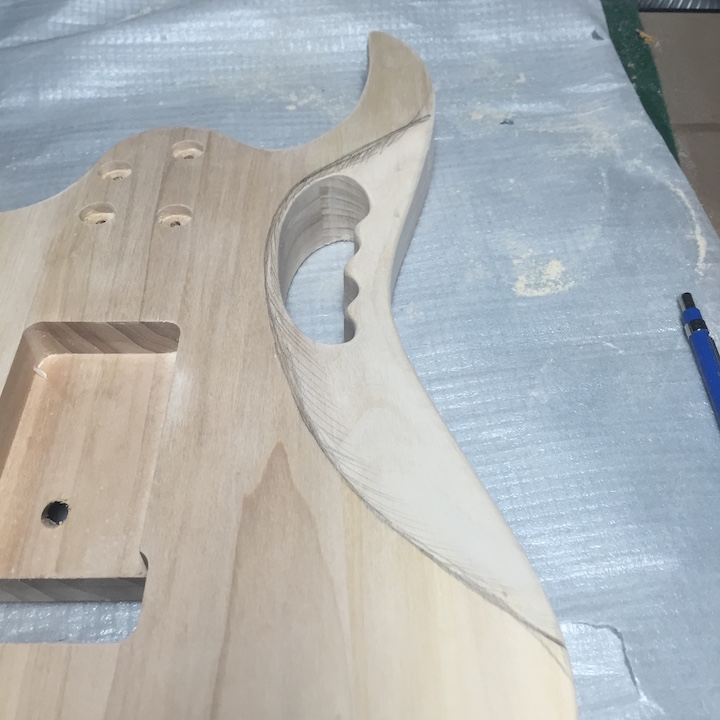 SO the body is about to get hit with 320 and then I shall undercoat while I try and decide what colour to paint it. The neck is going to get some reshaping, mainly just bringing the heel closer to the body join and thinning down the neck. Then that will get a thorough sanding as well.