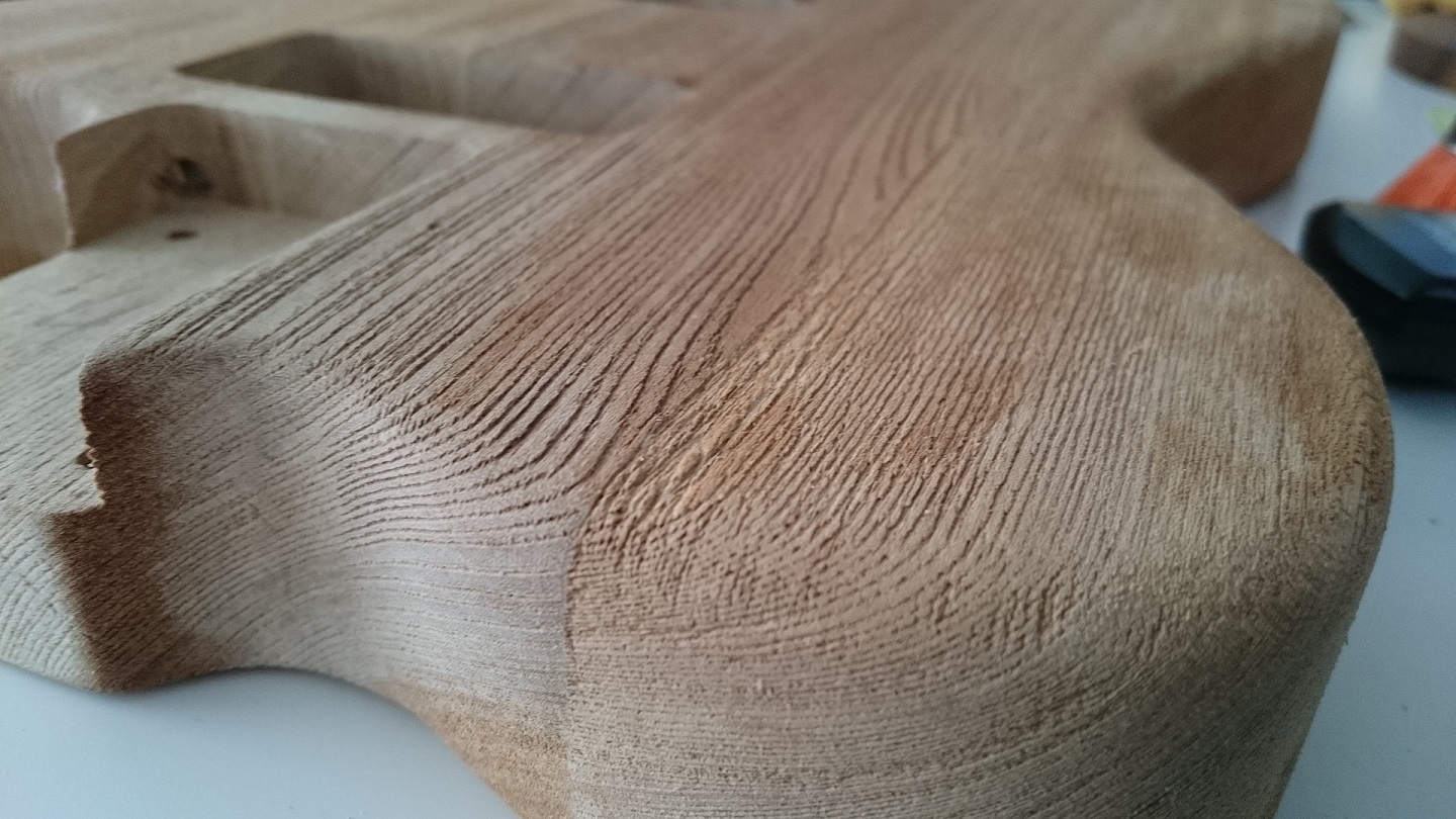 The colour plan is to give the body a gray look to go with black pearl scratchplate and chrome harware. Same shade of gray to the headstock top and very light/dirty shade of gray to the fretboard and gradually getting darker gray to the back of the neck.