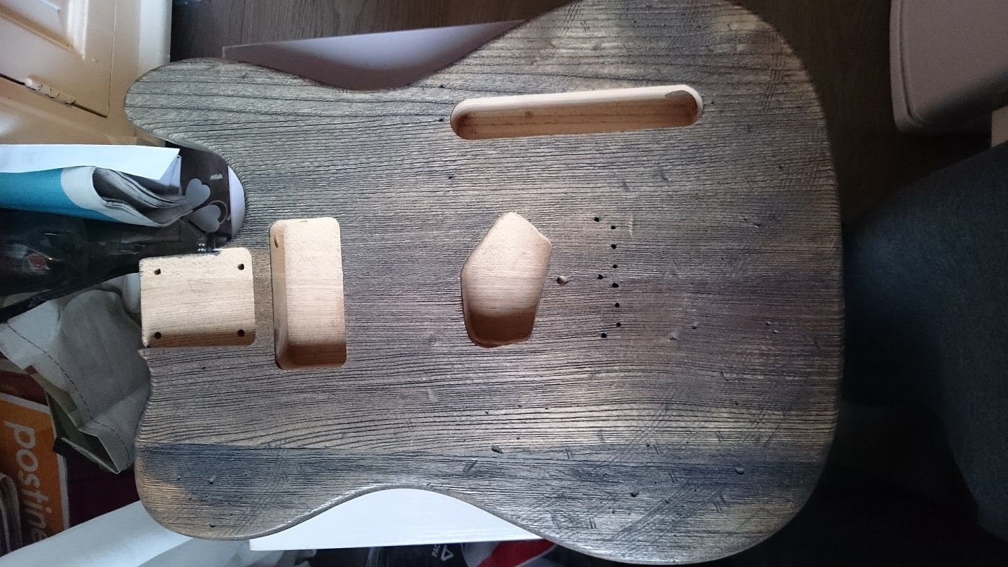 So I got the body "abused" and went to staining it and puttin on the Tru Oil. Had a hard time banging the body and poking extra holes in it - my heart almost bled but in the end... well you decide.