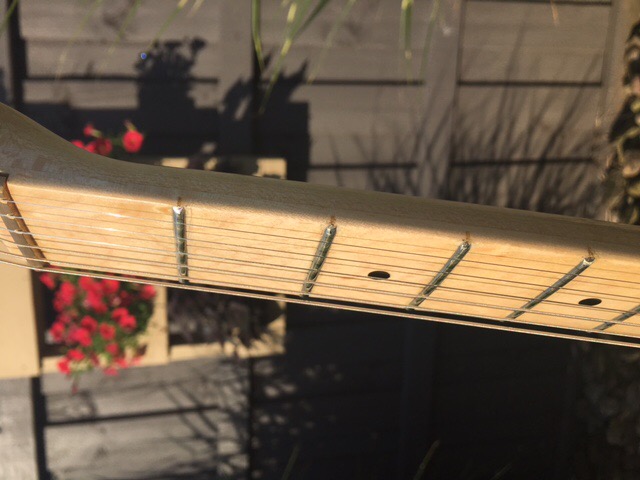 So during the crazy weather we had early in the year, the neck twisted like Chubby Checker in a washing machine. A new neck from PBG was ordered and fitted. Still have some fretwork, string trees and adjusting to do but thought you might like to see it. Sorry for the poor lighting.