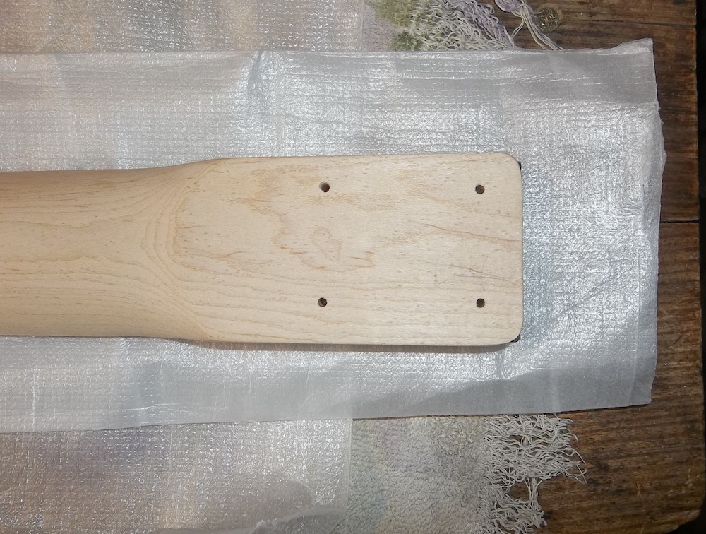 Just to be safe I use a nice strong stainless steel neck screw to cut the threads (ensuring it matches the thread of the actual neck screws). Candle wax and slowly does it… make sure you check how far the screws have to go in and mark it before you start.
