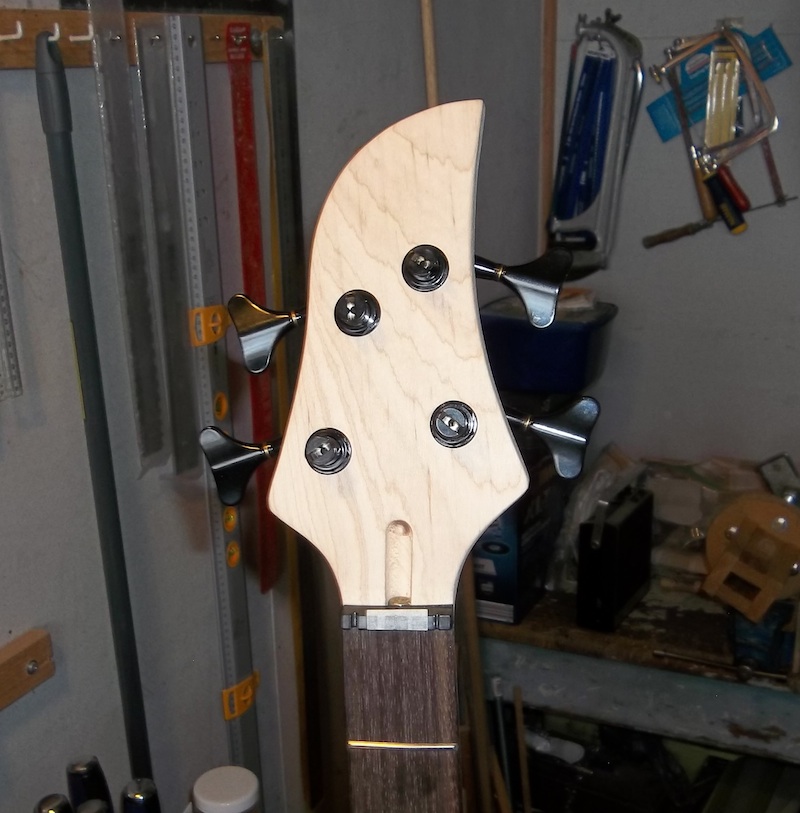 Threads cut and actual screws in safely. The reason I do this without the body is that if you have a faulty screw that snaps then it's a lot easier to extract and fix when you're just dealing with the neck heel and not the body as well. Been there, done that.
