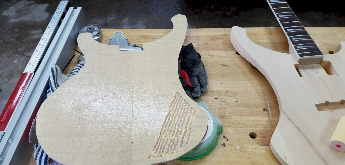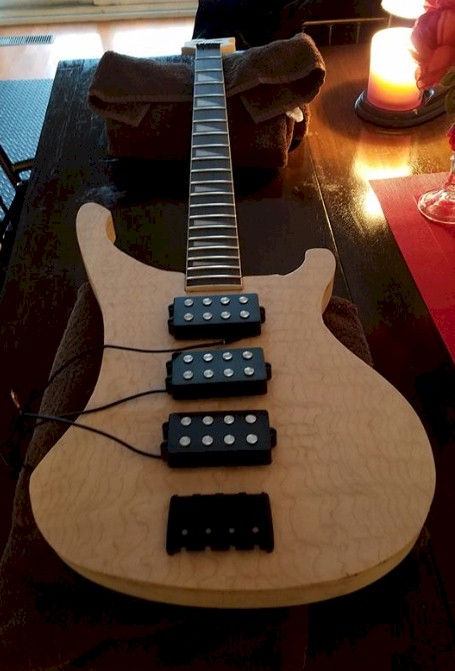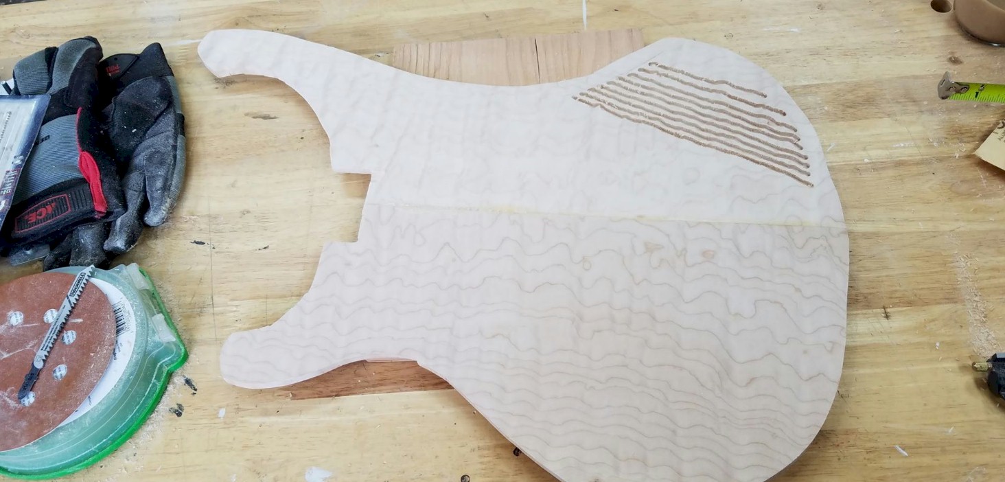 Note to self...when cutting the body shape out of the $120.00 piece of maple, take your time and give yourself plenty to work with.