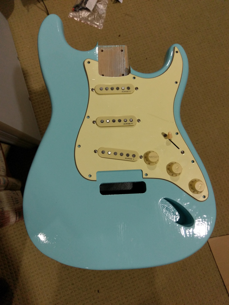 Quickest of updates, the pickguard to go with the aged and relic end product has arrived.