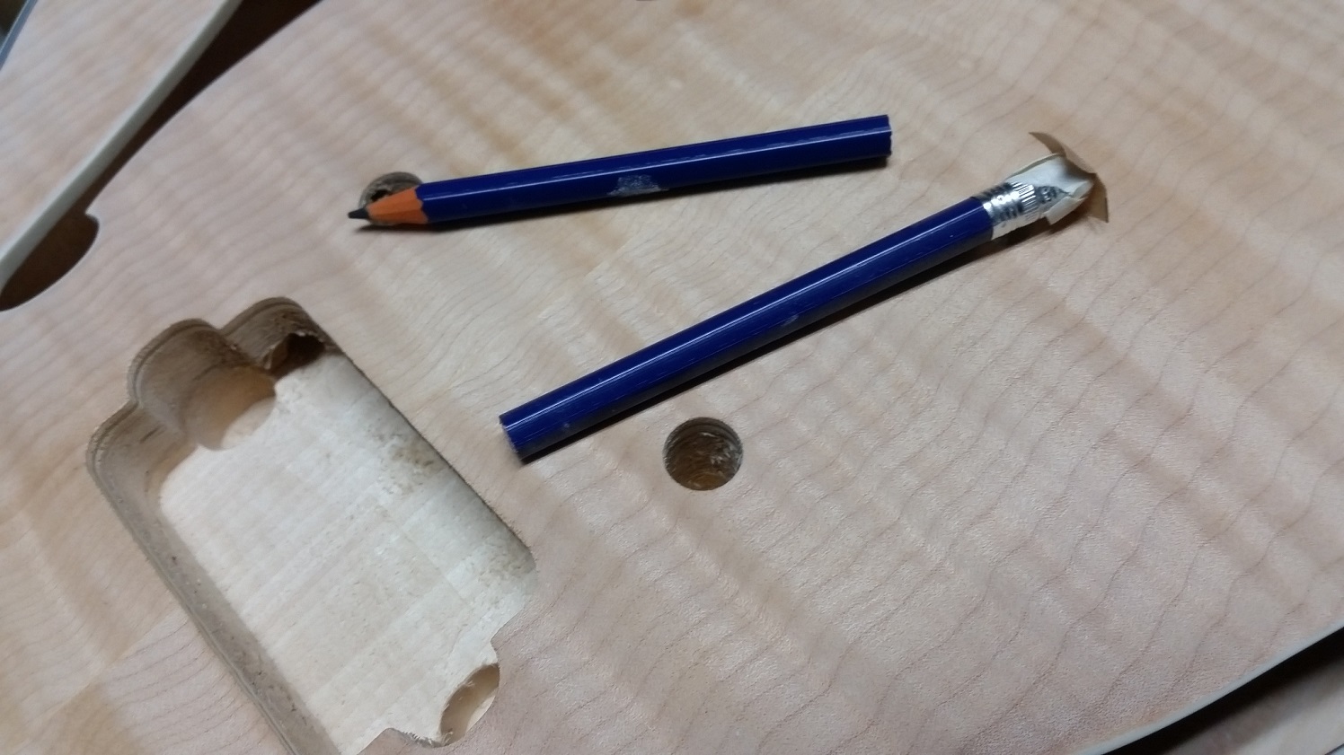 Have previously extended the neck pup cavity roughly 3mm to get the pup and dress ring to fit properly and keeping the neck at the right spot for the scale length.