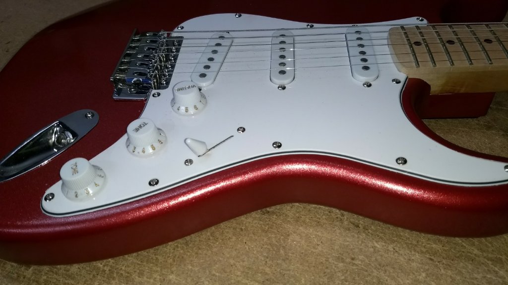Over the weekend, I painted the Strat Red, and lined it with Copper foil.