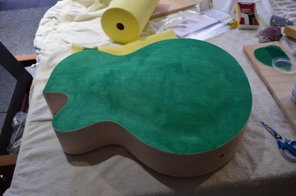 Ok, so after a few days of filling and sanding and more sanding, I got to the point of applying the dye.