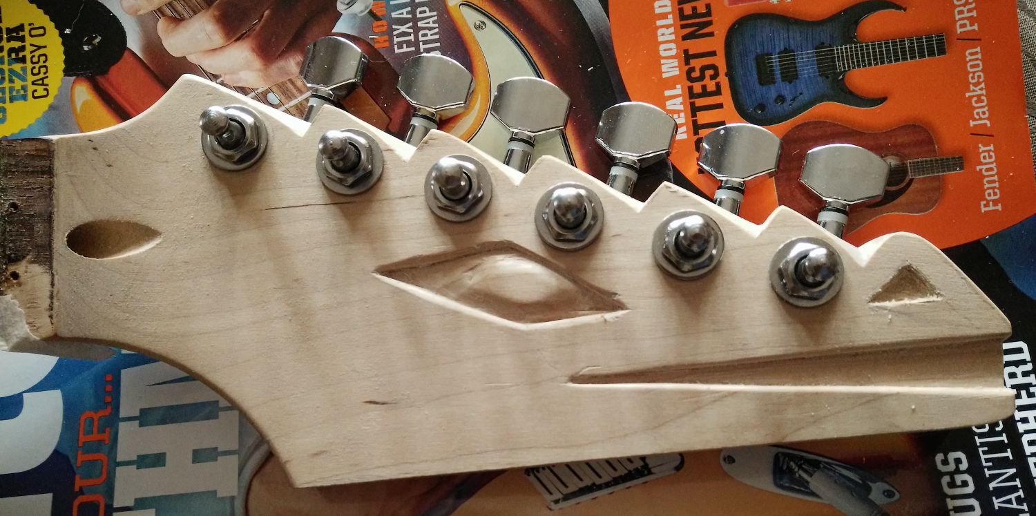 Don't forget that the washer around each tuner post (plus the locking nut) is bigger than the tuner hole, so will probably cover up some of your carving (if the dots for the tuner positions don't take that into consideration). You are looking at around a 14mm diameter washer for a 10mm diameter tuner hole.