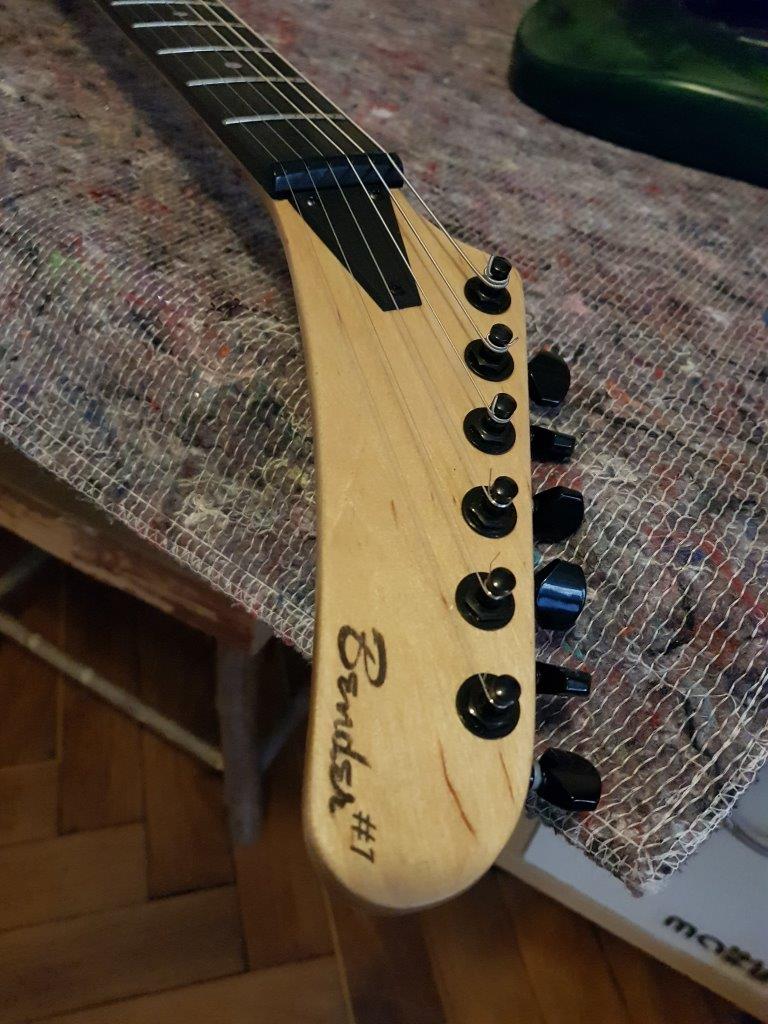 I truoiled Body and Neck as well as the headstock, filed the frets, dyed the fretboard black, made a new Decal out of Overheadfoil.