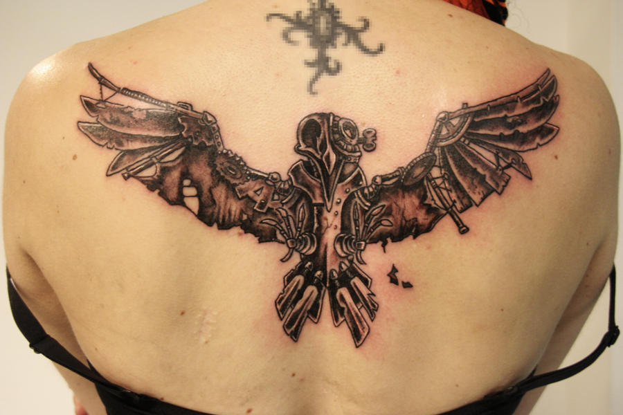 I always wanted to do a steampunk style. never got around to it. was going to paint this bird on the back lower part of the guitar body.