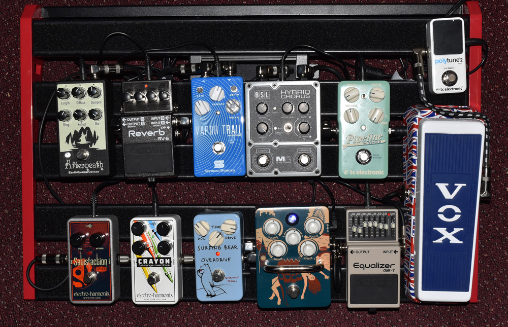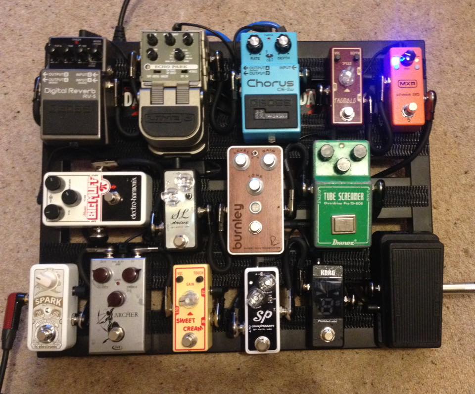 All on a Pedaltrain Nano 18 board with 2 x Voodolabs PedalPower 2 PSUs