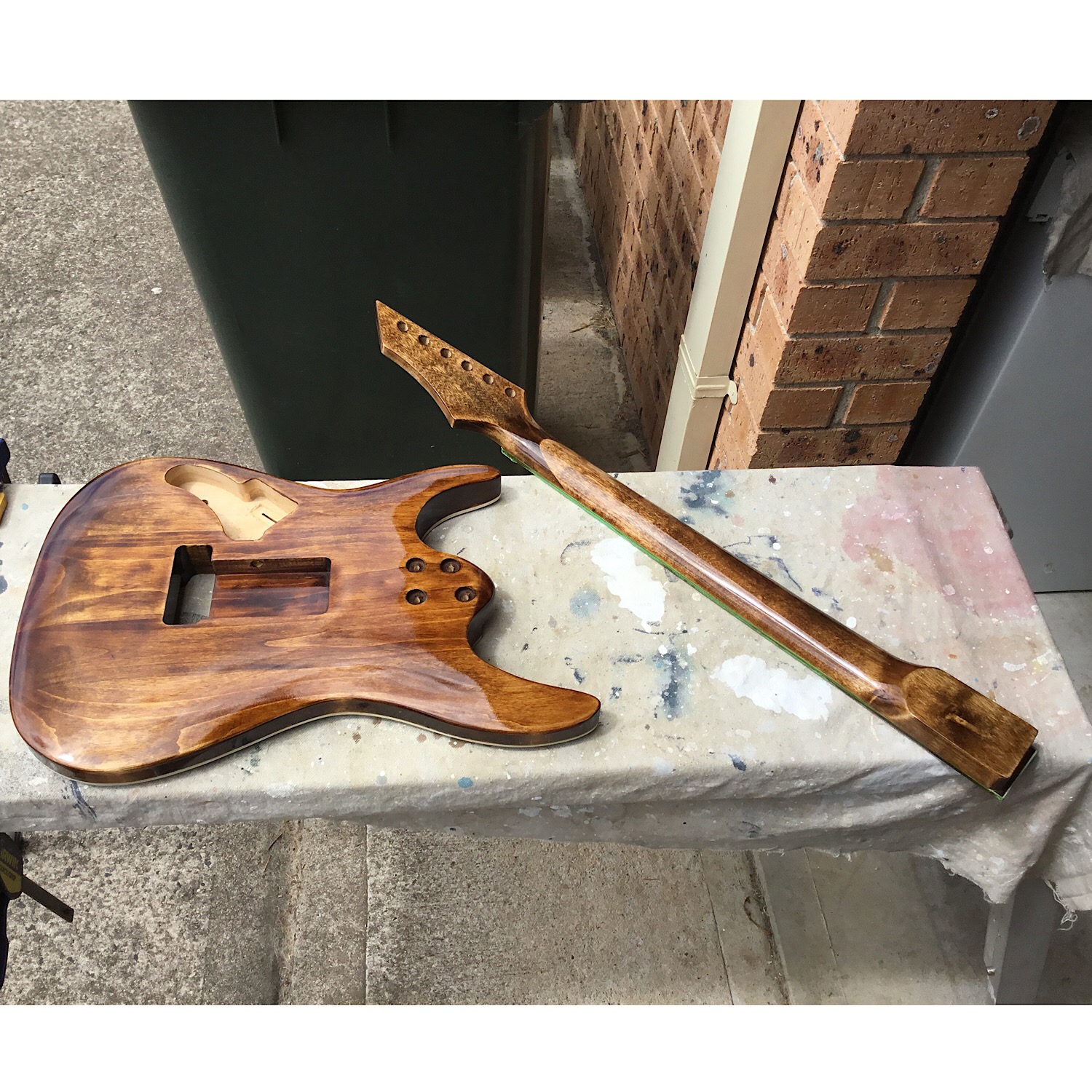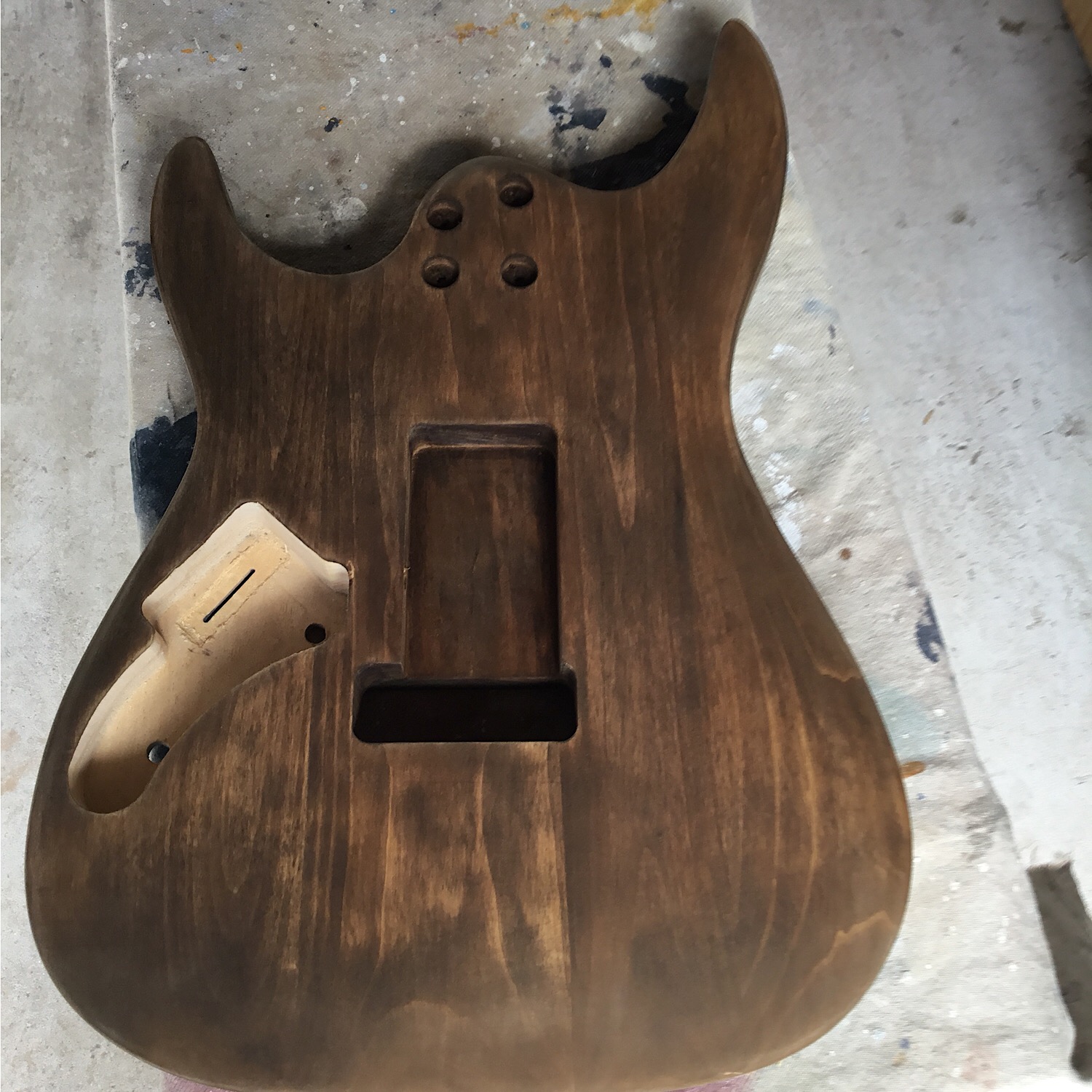 I was looking for a rustic type of color for the back and neck so I tried some Teak on a small piece of wood and liked it. Unfortunately the color came out way too dark on the guitar. No matter, I will live with it,it’s sort of growing on me. Attachment 25041