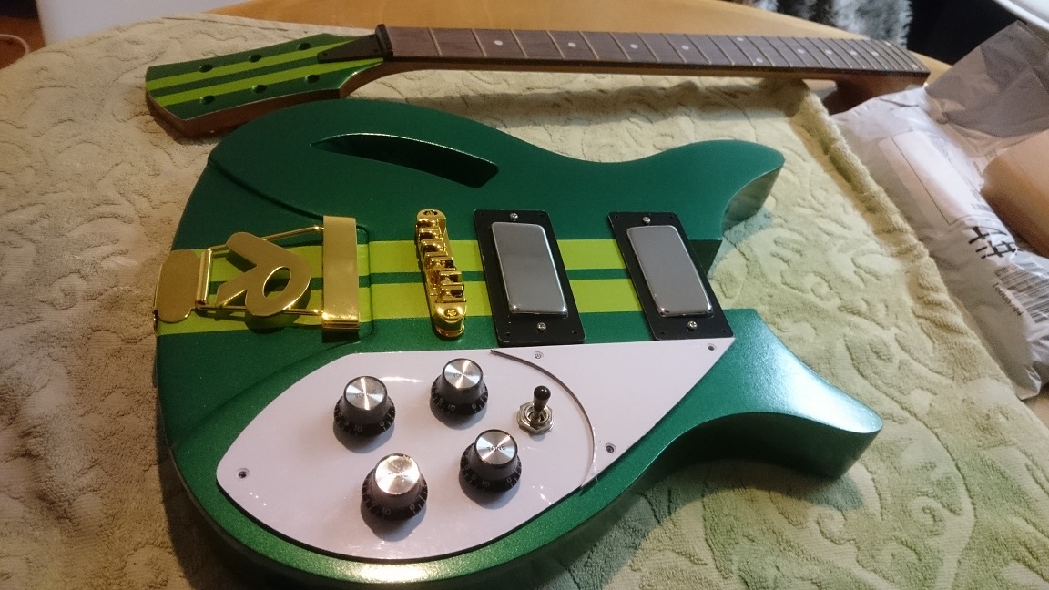 Glued and clamped the neck in place last night. (Might have accidentally added 0.5mm or so to the length... Time will tell).