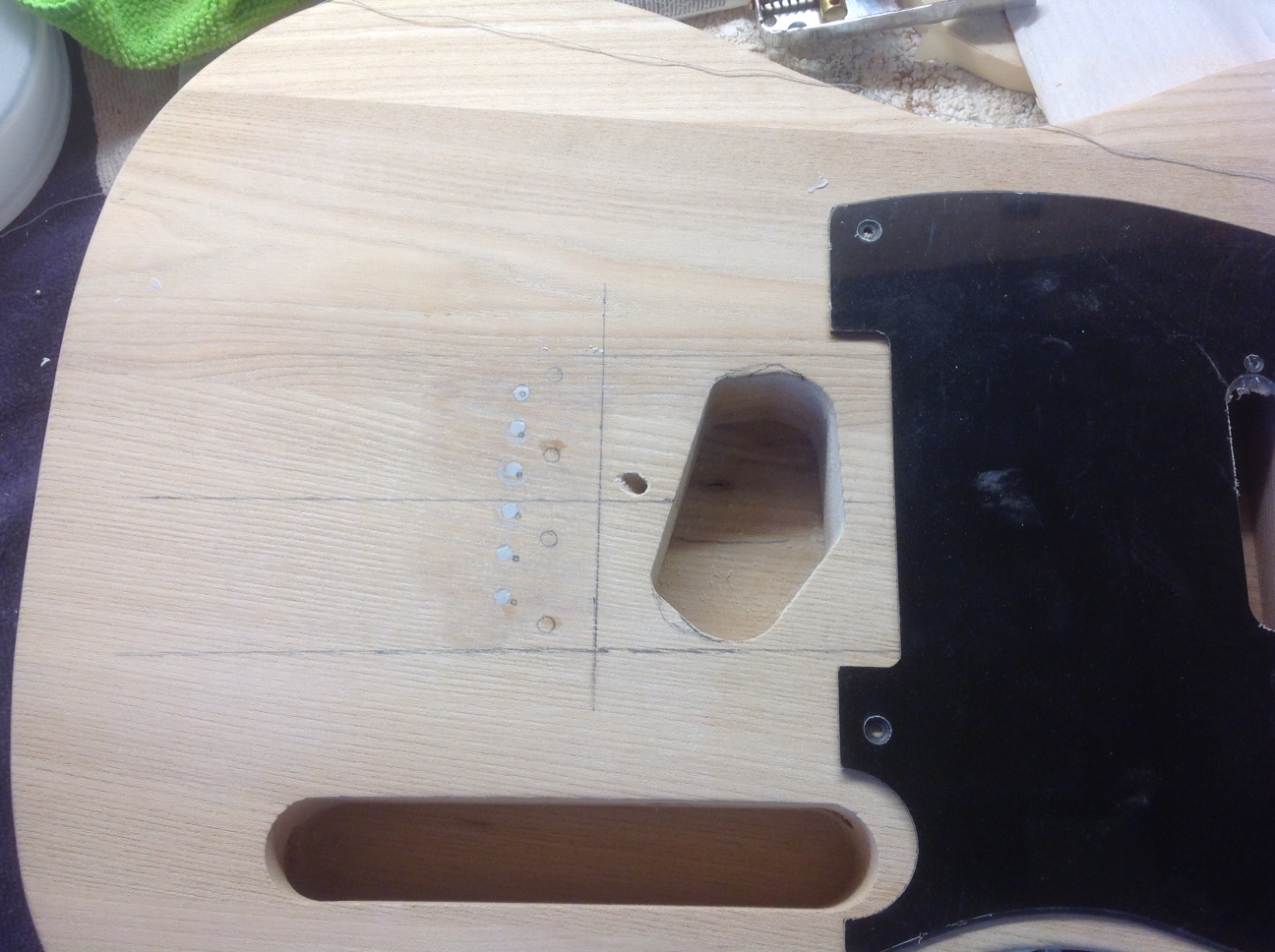 Ok first job, filling the wonky pre drilled ferrule holes on the back with some builders bog.