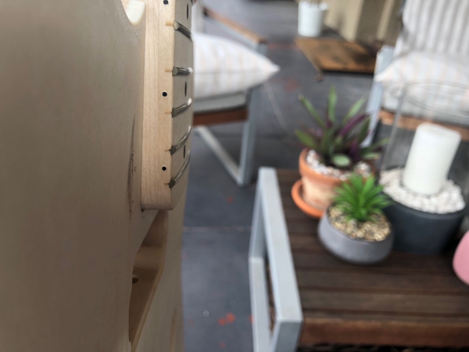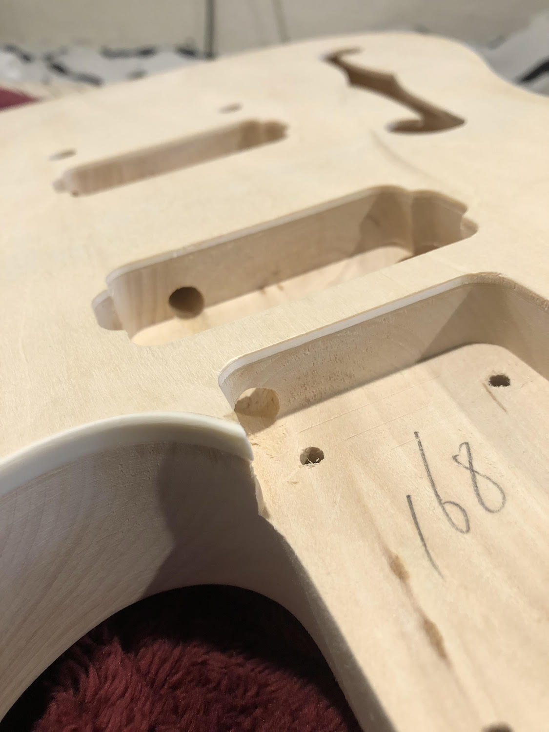 Doesn't do much around neck pocket area as it looks like there are black pickup mounting rings.