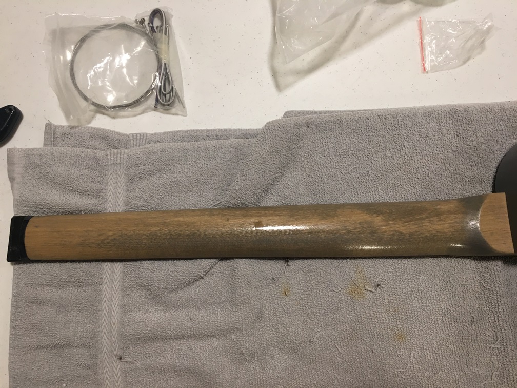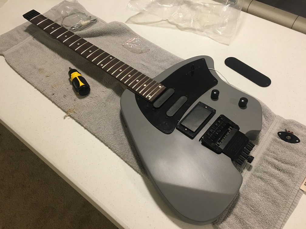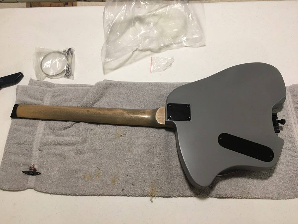 Opened the kit again last night, thinking I didn't remember seeing a tremolo arm. It was in the bag with the guitar cable. Started looking at some of the other hardware, and I'm not real impressed with the design of the locking nut. Looks like it will be troublesome to restring with that on it. So, I went on-line shopping. I once again found a