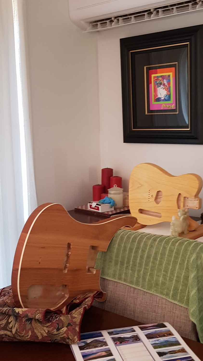 Still happy with how its turning out. Will finish it tomorrow probably, only got the pickups and output jack to solder in, light sand and lemon oil for the neck.