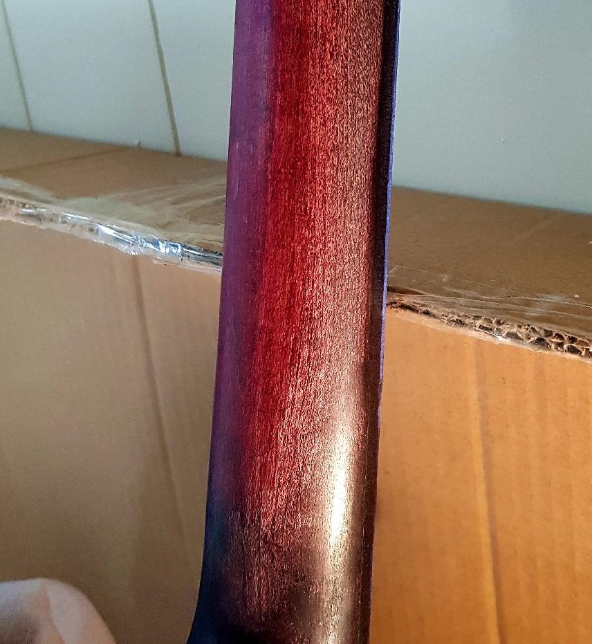 But, never satisfied and having read about people sanding between coats I gave it the lightest possible sand I could, but on one part it took all the colour. So I reapplied some black stain and then some colour enhancer and well, it didn't work.