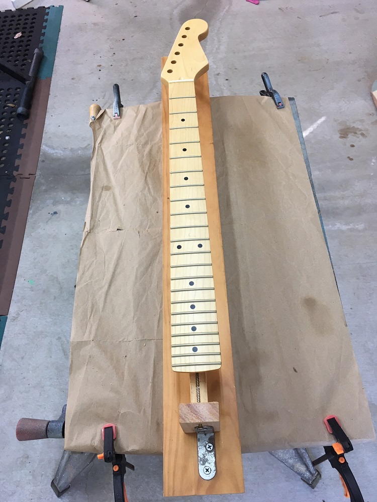 I am doing the finish by hand. So I will be able to finish the highest three frets before clamping.