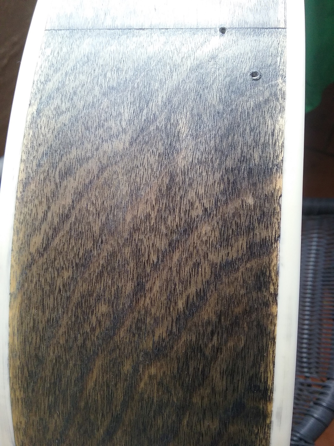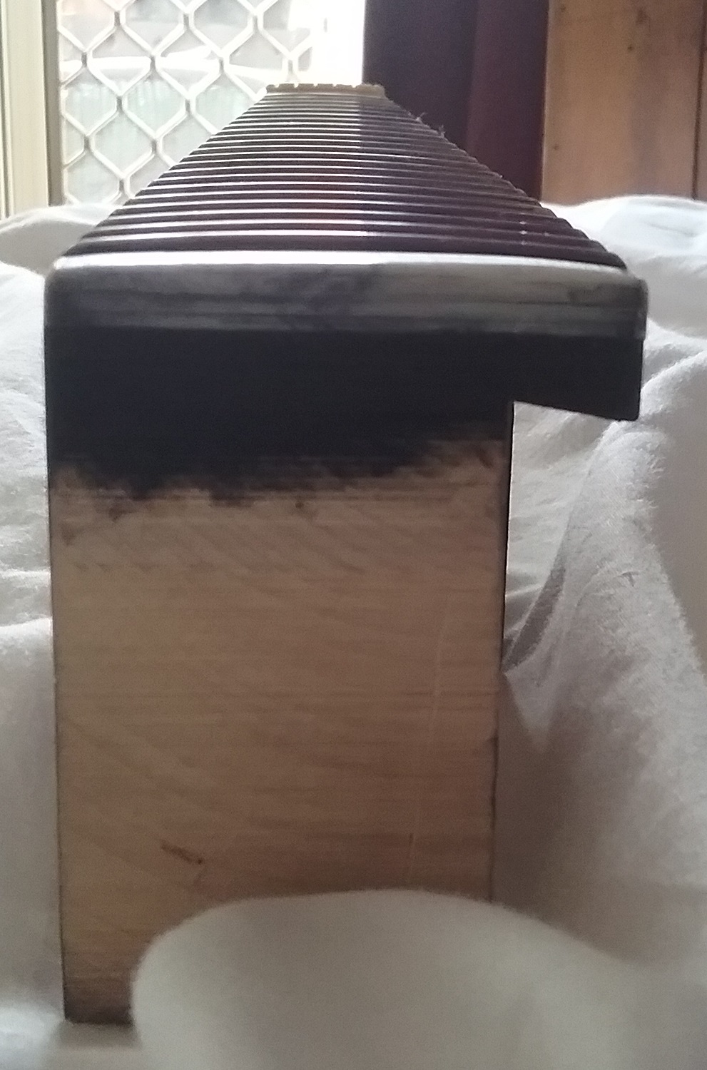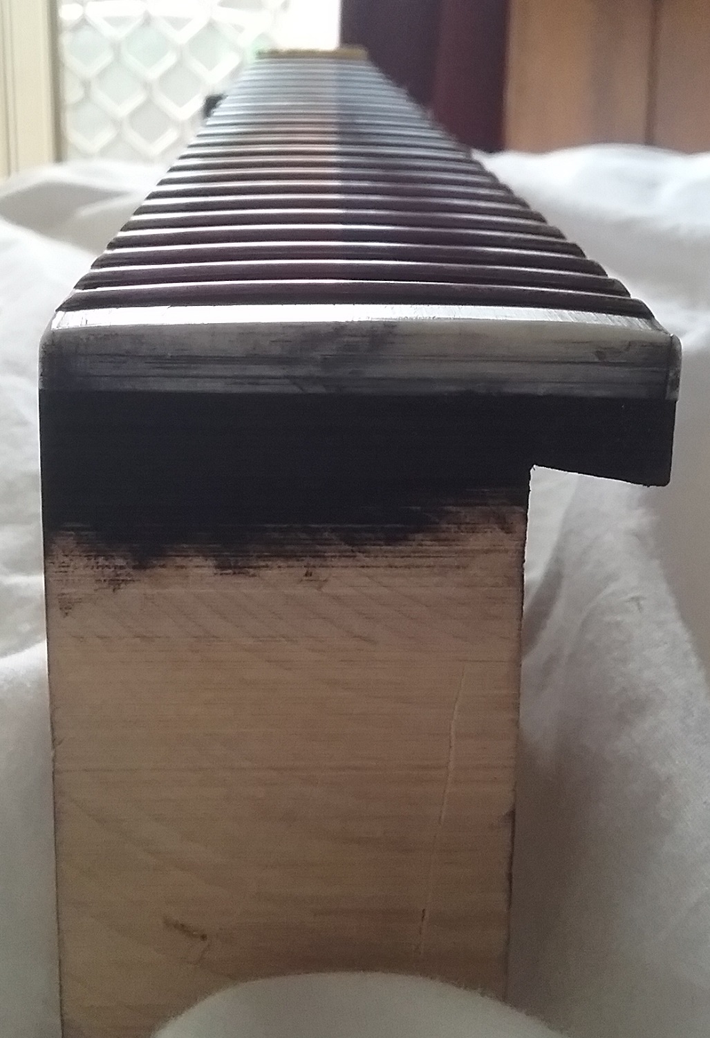 Tried a blade edge. Surprised it worked to the extent it did. Couldn't be bothered (personality flaw) doing much and didn't have a decent blade for the purpose, so I tucked into it (against wise men's advice) with steel wool and 360 grit. I'm content with the imperfect result -- more on that later.