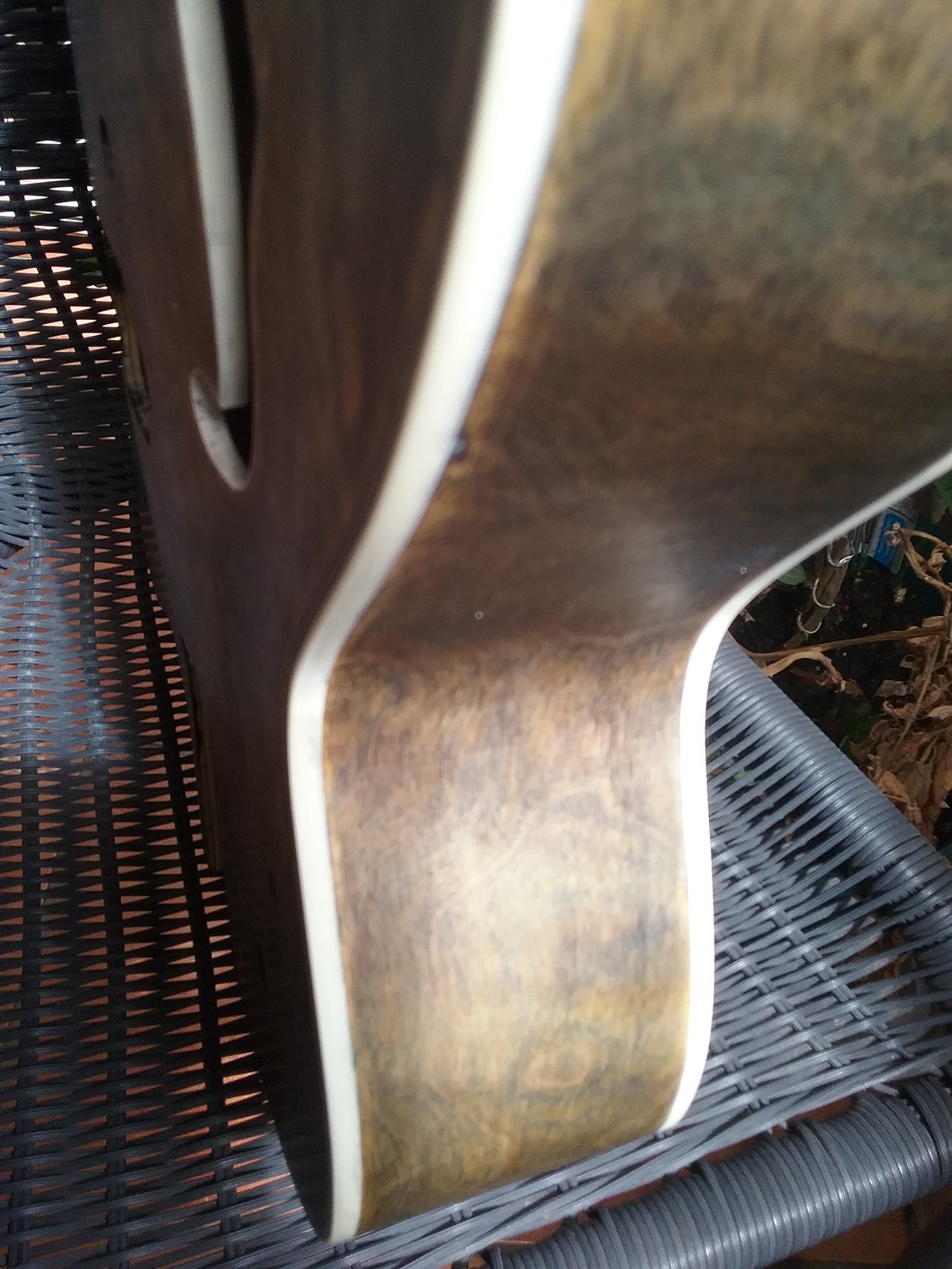 Hello, gents, guides, and gifted gabberers. It's been 8 days since I applied the thick intensifier coat. A couple of days back I gave it a steel wool rub down to remove the bulk from the sticky areas. It's still quite tacky to the touch and I suspect I'll need to rub it down again. As Waz would verify, it's been very humid up Briz way due to lots of recent rain, but still warm.