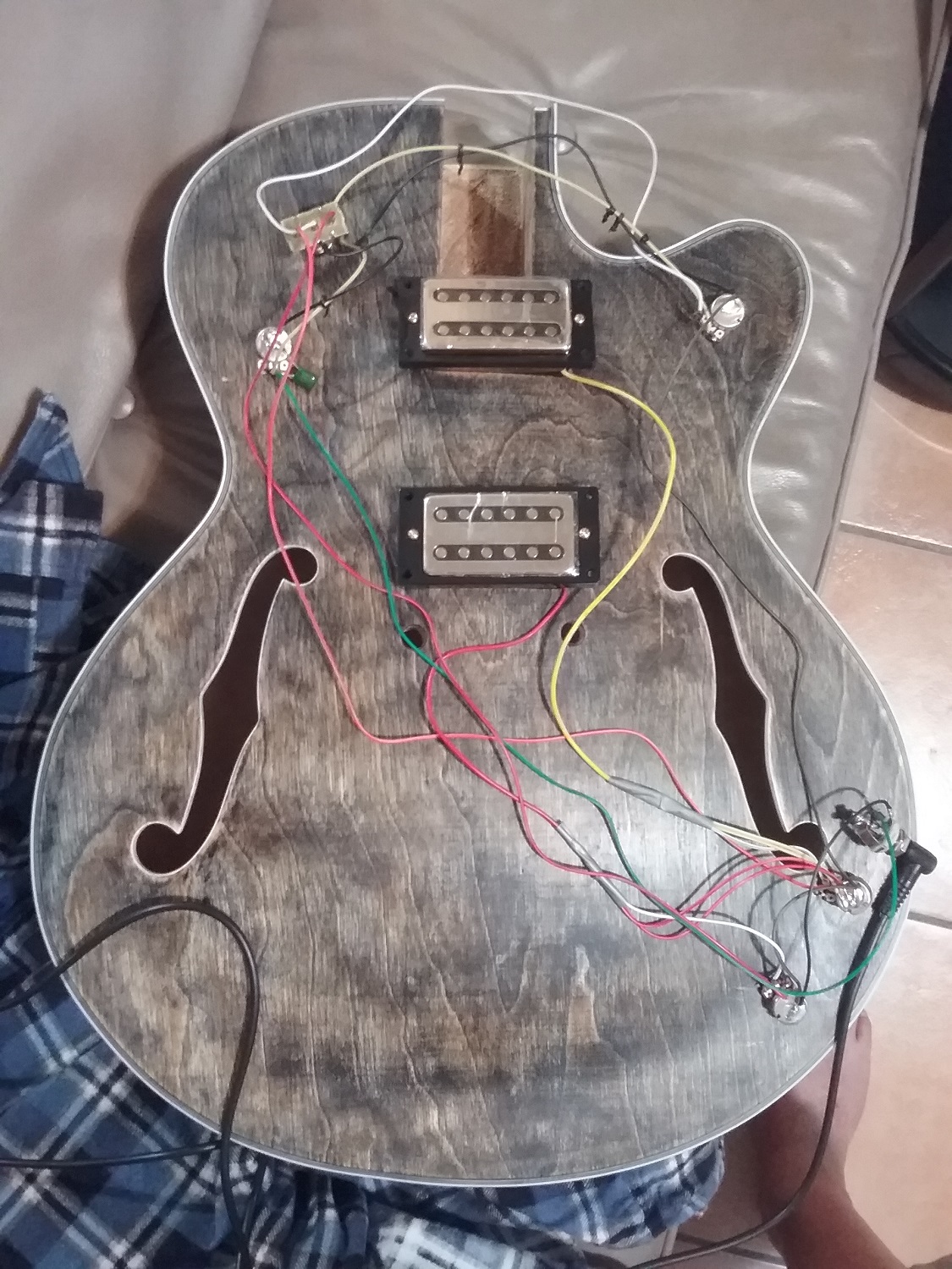 So I applied a thin coat of finishing oil to the body and neck. I am happy with how that turned out. Also. I am a little :mad:. I believe I should've bypassed the intensifer altogether and gone straight to the finishing oil. I would have my little "Blue Heeler" (or faded denim jeans) and -- theoretically -- complete the job sooner with much less hassle, frustration, and self-doubt. The finishing oil is a satisfactory intensifier for the Bondi Blue stain kit ... but the kit's intensifier product itself is not suitable (imo) at all.