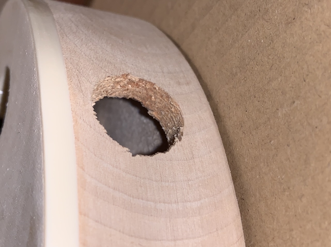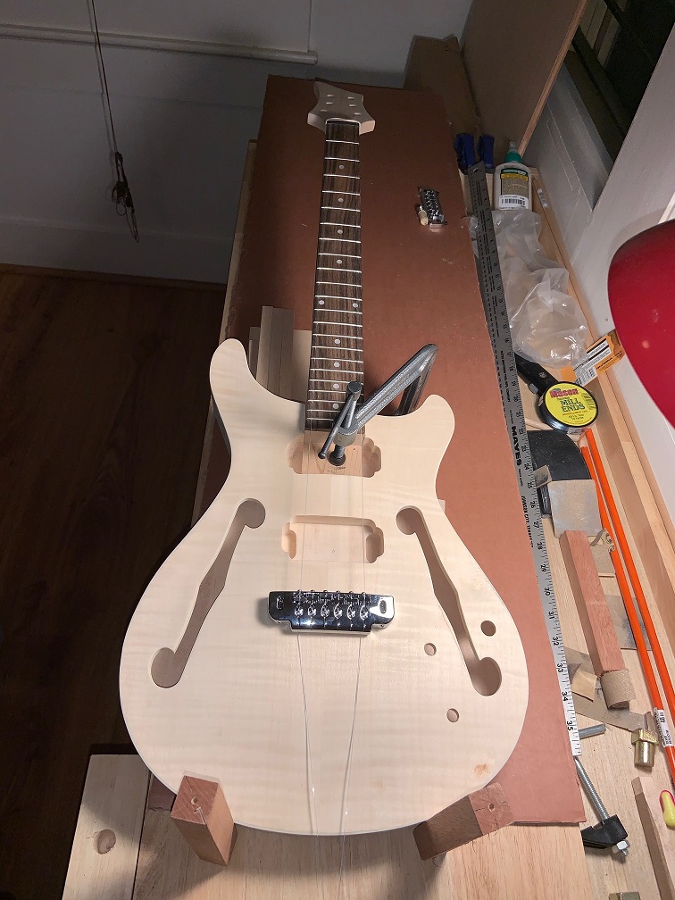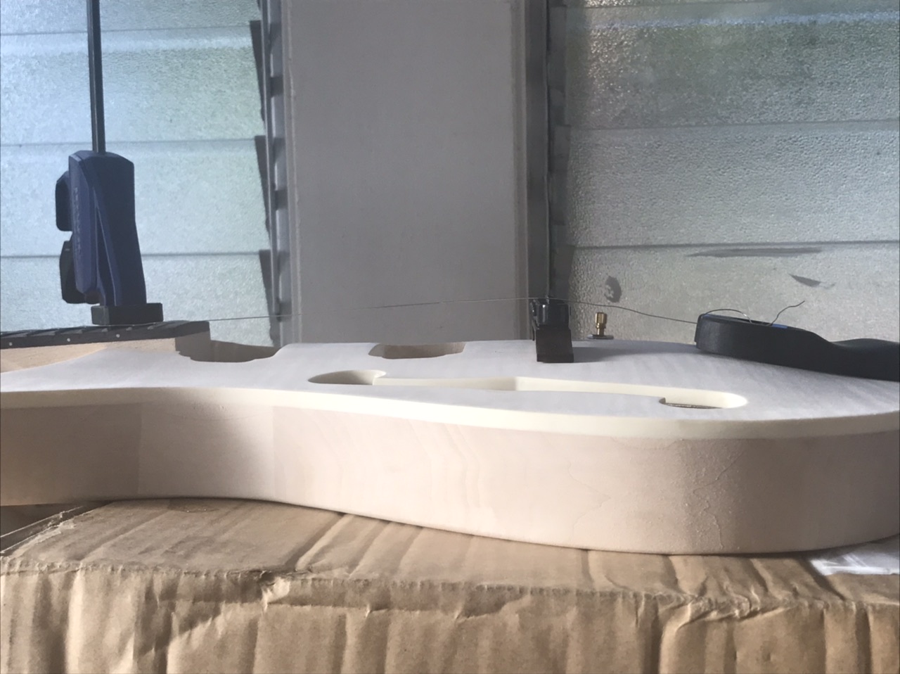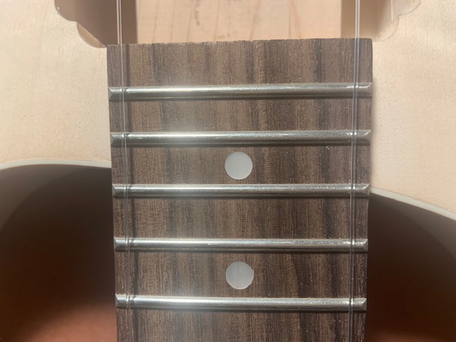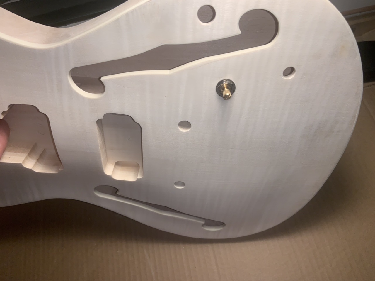 It's a good idea to stuff old newspaper or similar into the body when applying finish to stop the finish getting on the rear of the interior (note that digital newspapers don't work as well as the older paper ones do). Or try and stick masking tape over the inside of the holes. Something I'm sure you would have done, but I thought I'd mention it, just in case and also for the benefit of other readers.