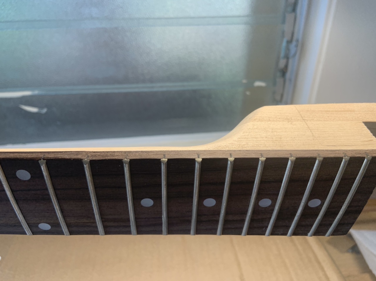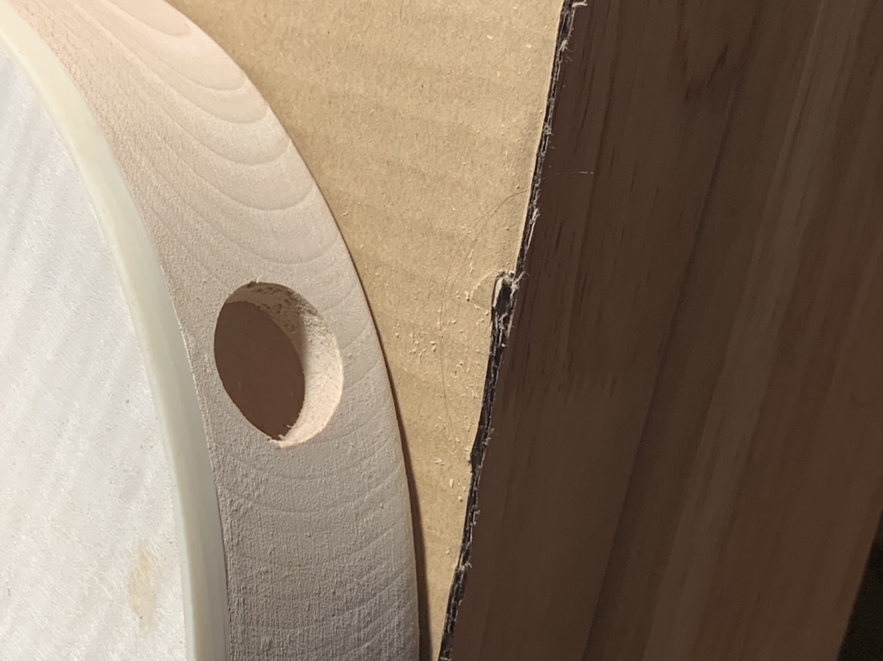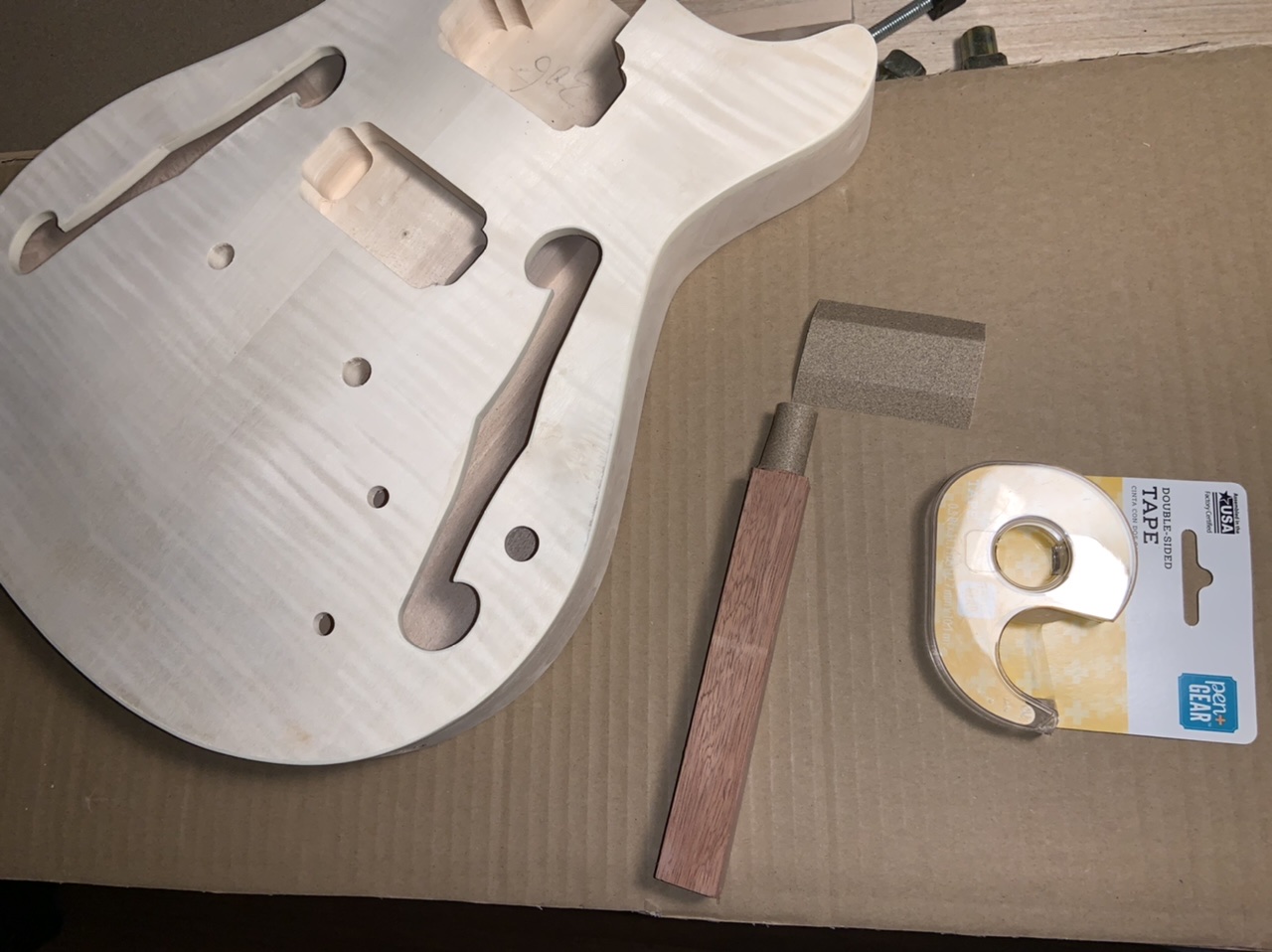 It's a good idea to stuff old newspaper or similar into the body when applying finish to stop the finish getting on the rear of the interior (note that digital newspapers don't work as well as the older paper ones do). Or try and stick masking tape over the inside of the holes. Something I'm sure you would have done, but I thought I'd mention it, just in case and also for the benefit of other readers.