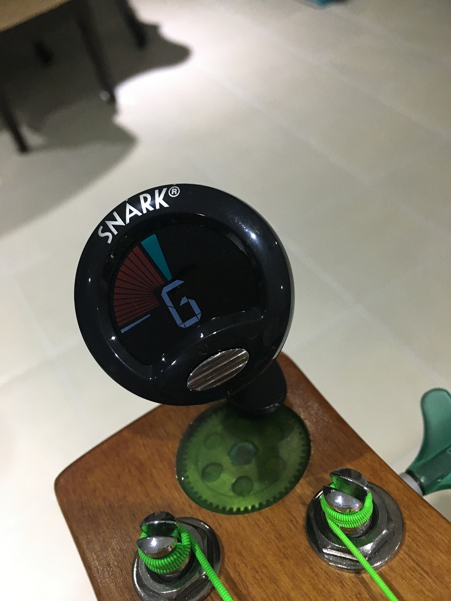 Once the G was sorted, I placed tape so that I could remember where it was before adjusting for the E. I only had a 4 string tuner on my phone so focused on this string rather than the low B.