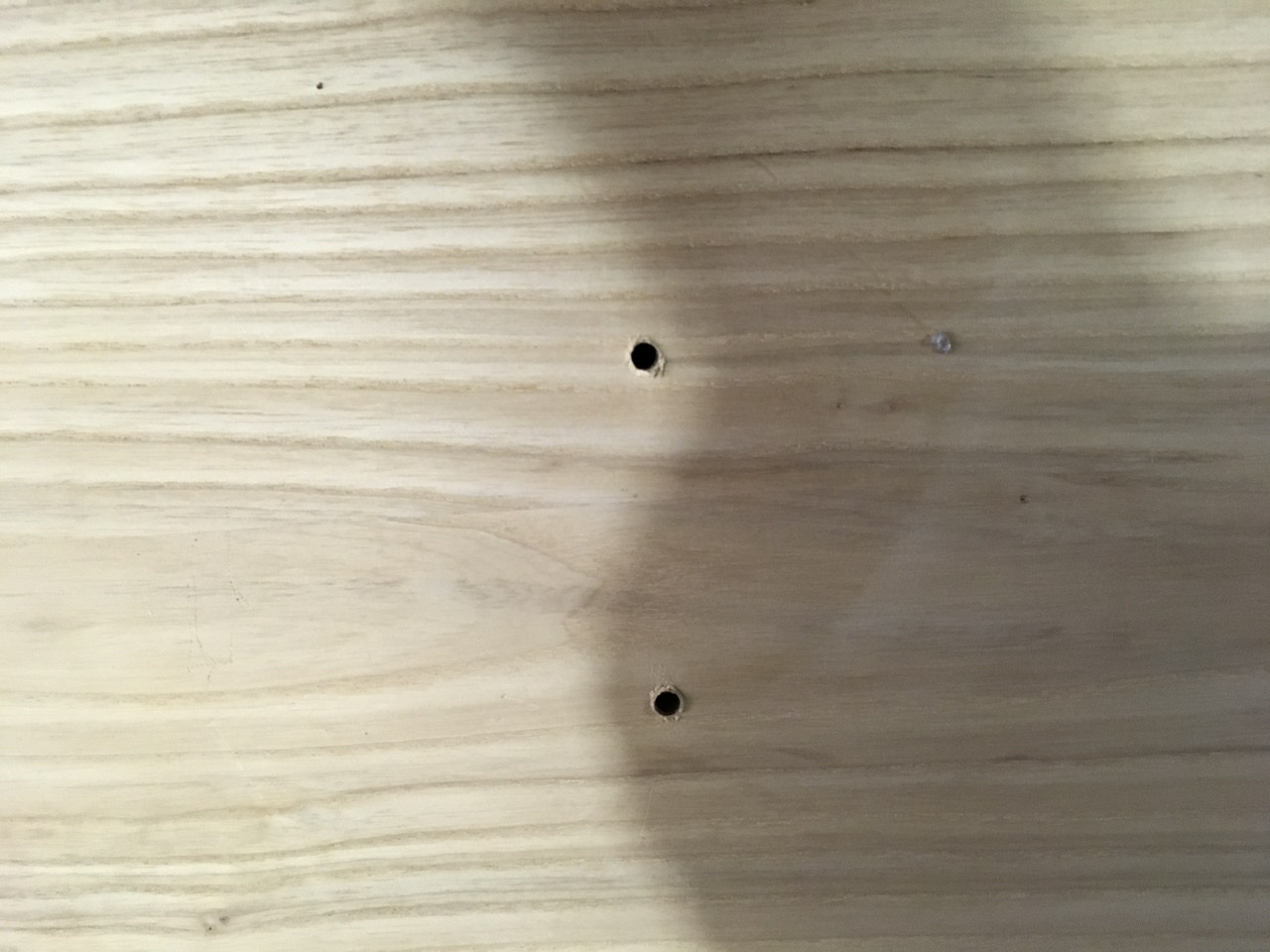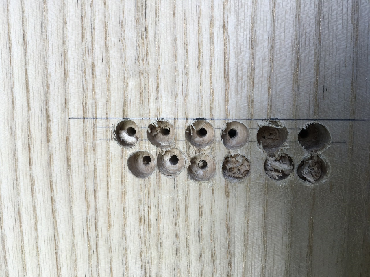 The drill was a Brad point and brand new for the job. The drill is only a few months old and perfect. Not that I was ever going to blame the tools. My technique somewhere let me down. Maybe I should have rechecked that jig after each hole?