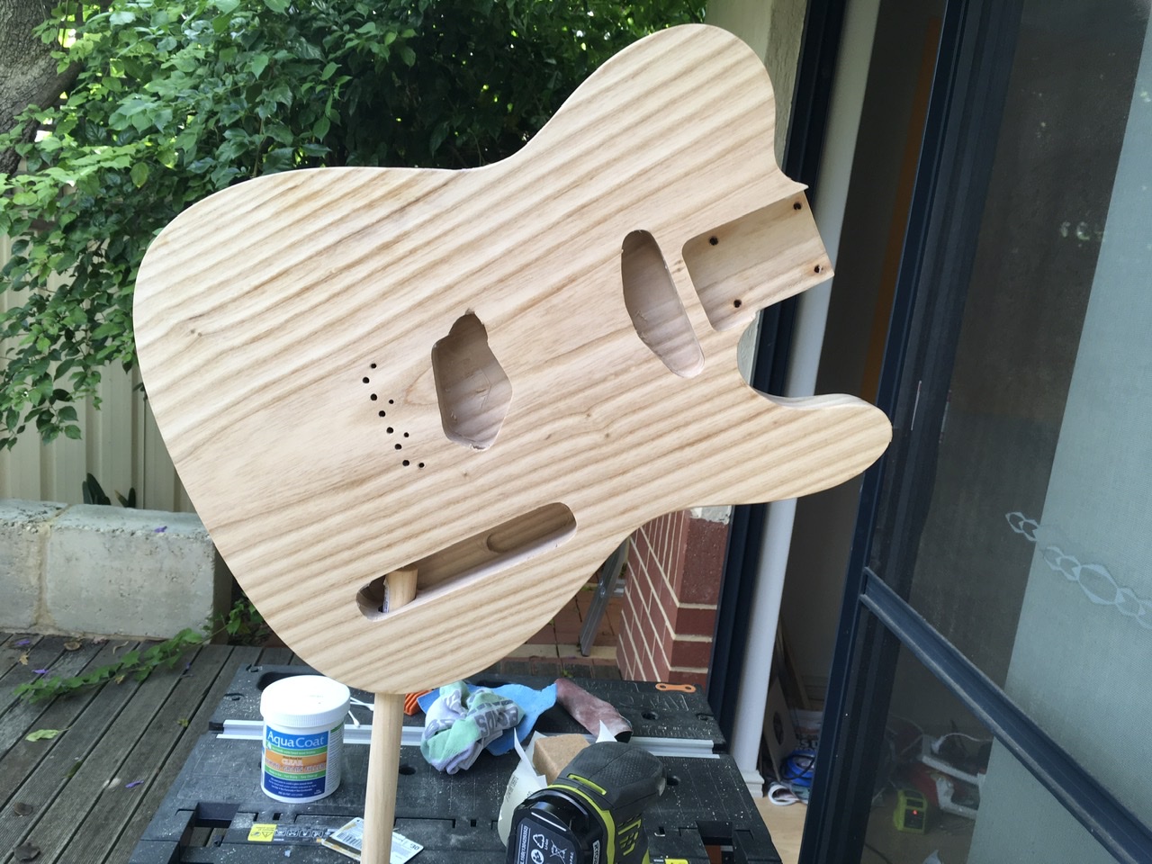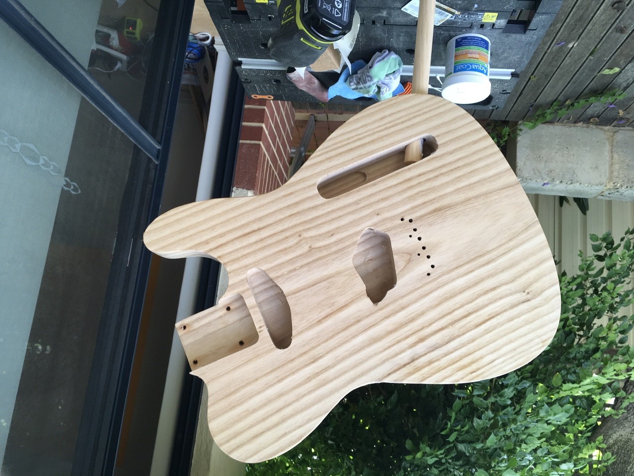 Time for sanding back and grain fill for the body and oil topcoat for the neck, now that then neck has been curing for a week.