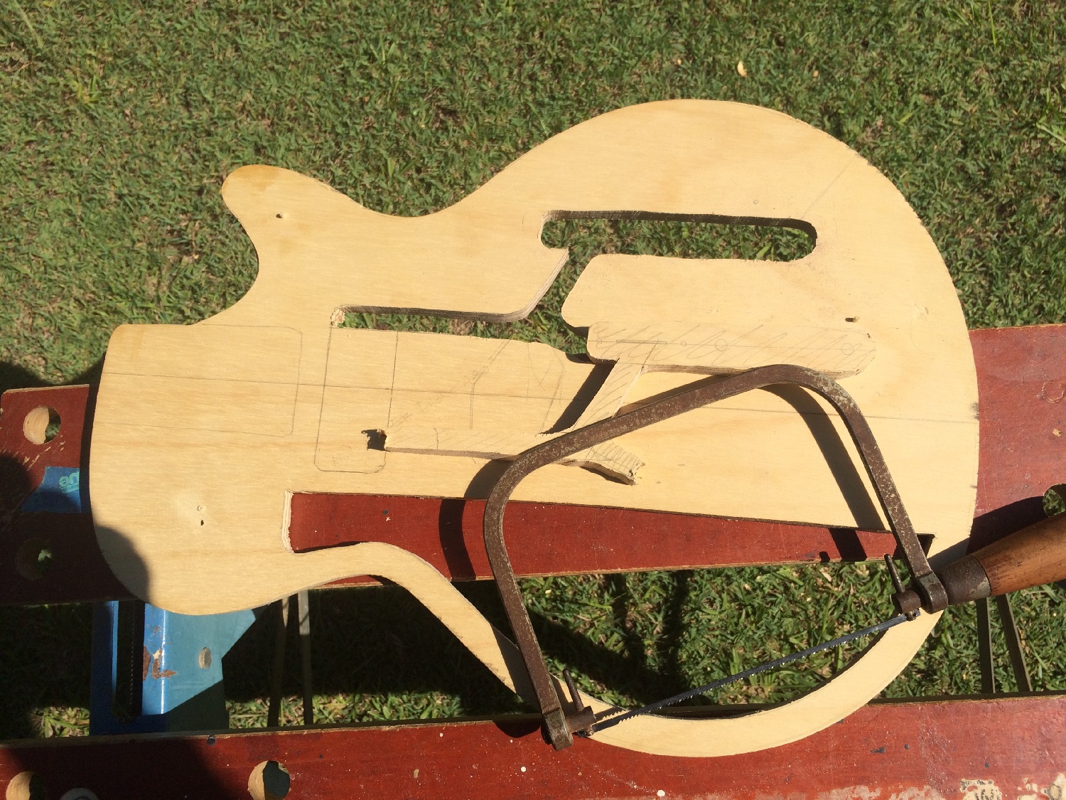 First off was to cut out where the pickups and the control cavity are going to go. Because of the body construction that means I only have to cut out the top layer of pine.