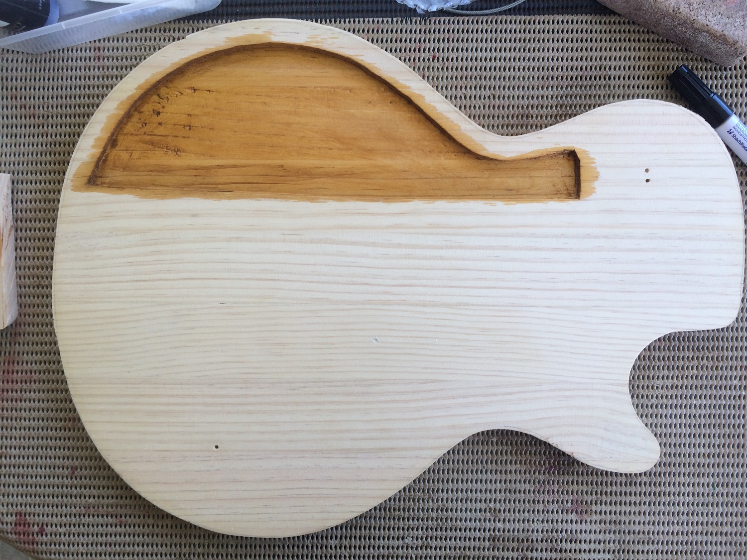 I also put a couple of coats of stain on the guitar and I must admit to being rather underwhelmed by the result. It is less than eye catching so it looks like I will go with Option B for the finish which was to paint. If that fails I will sand it back and go for the stain again.