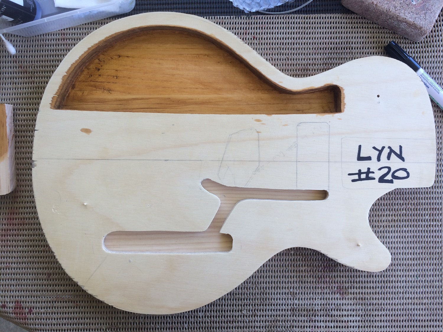 Still a bit of work to be done on the body. Final shape is OK but I need to work on access to the higher frets, the transition between the neck and body and do some comfort cuts. Unfortunately belly and forearm cuts are out of the question because of the chamber, which probably only leaves a “lap” cut. But I will have to be careful not to get too close to the control cavity when doing that one.