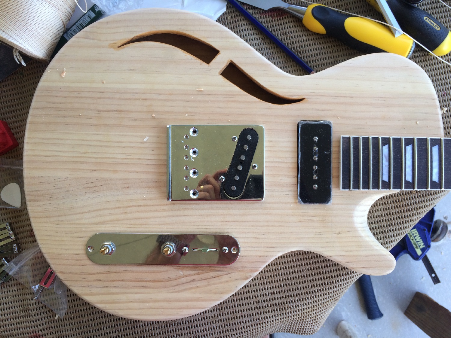I managed to get a mock build done to make sure I’m still heading in the right direction. The neck pickup location was a bit of a compromise as it is does not match the position of either the neck pickup on a Tele or the middle pickup on a Strat. At this stage I am not overly concerned as fundamental harmonics only apply to open strings, right?. I HOPE! Lol.