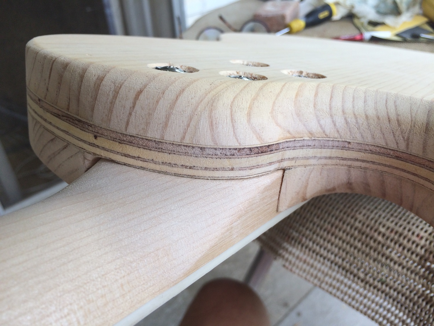 I contoured the neck pocket for better access to the 24th fret and also reshaped the heel of the neck a tad to make it a bit more aesthetically palatable.