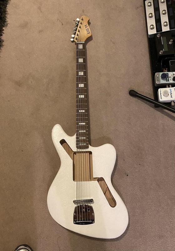 I know it looks super weird with no pick guards or electronics...