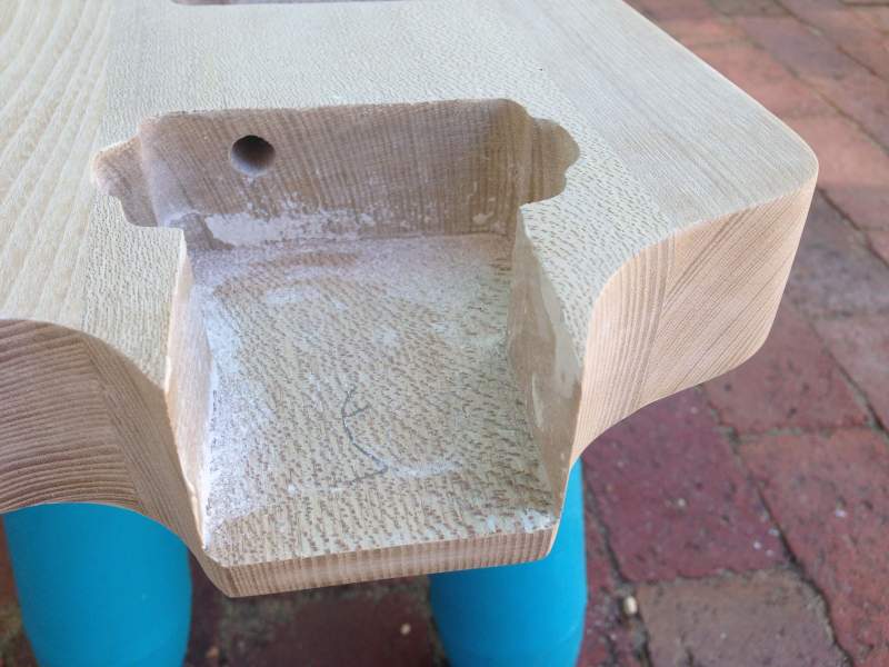 Sorry I haven't updated in a while I got a bit busy but I've managed to get back to the build and I've got it all pretty well sanded up to 320. I ended up using 240 to sand back the timbermate but only till I hit wood so I didn't sand it out and then switched to 320. There were a few small spots that looked like they might not have been covered but now that it's sanded back I can't see any difference so will that be okay? There's a few spots that still need cleaning up and I was wondering if you could give me any tips on doing that, the areas in question are the bridge post holes the control cavity and control holes and neck pocket as well as a few small spots such as the small hole between the control cavity and the stop tail mounting hole ( I assume this is for a ground wire?) and a few spots along the edges.