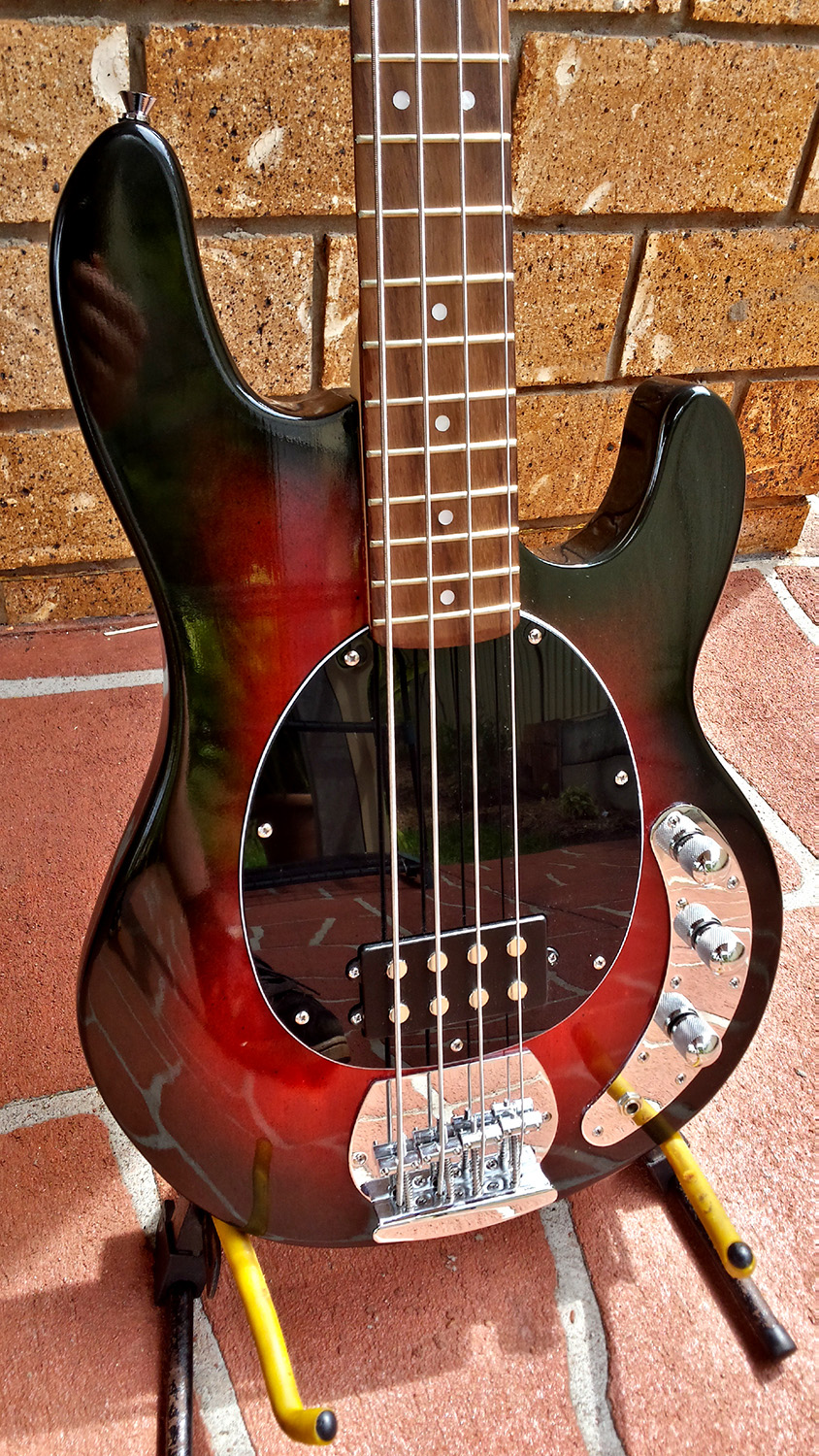 “Oh wow love the idea’s you have put into this build to make it original. Great black/red burst and a nice finish to match. This has “Slap Dat Bass “ written all over it. Great build and some great original well thought out ideas.”