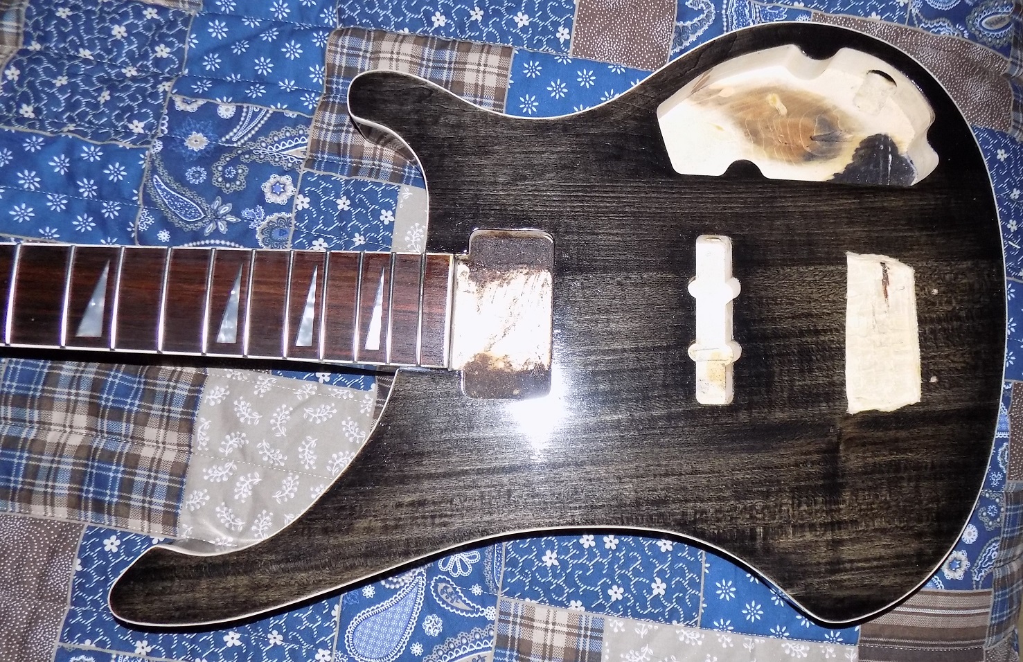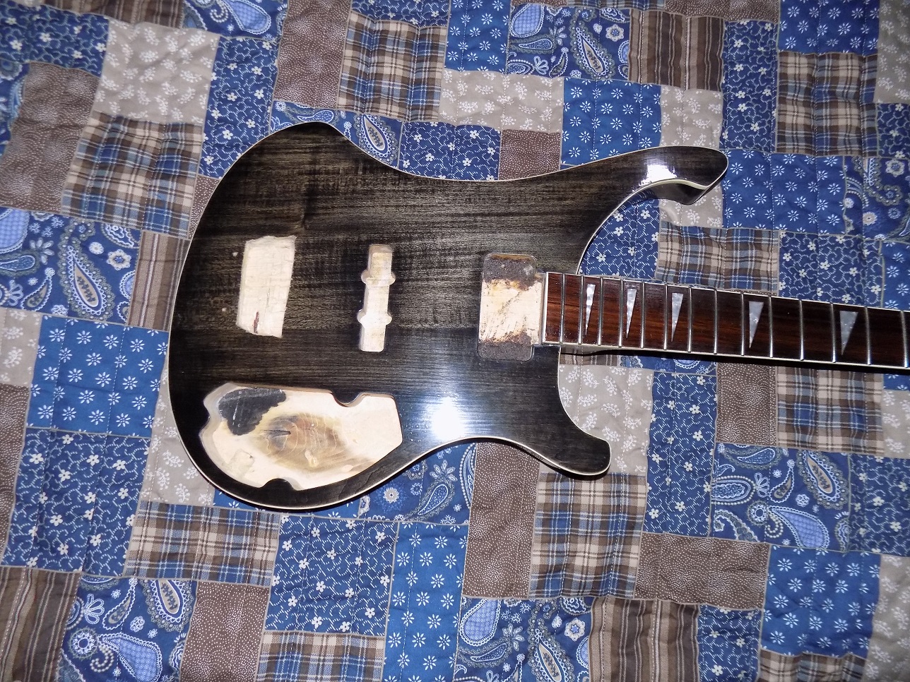 good one Paul glad it's back on track and almost finished. Is that a stain test in the control cavity the darker section ?