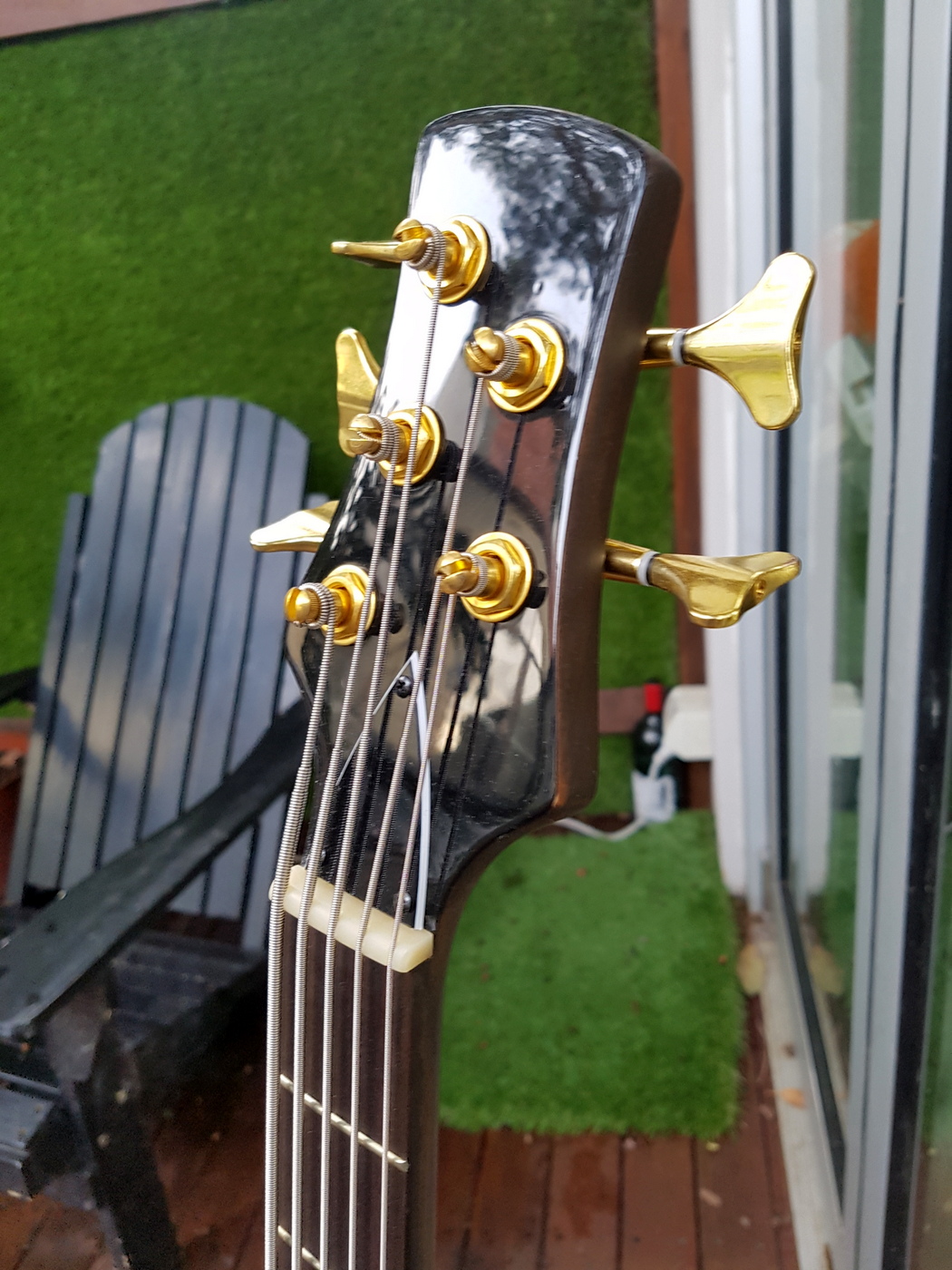 Truss rod cover is now on, and the Chinese strings have been swapped for a set Ernie Ball Regular Slinky Bass 5.