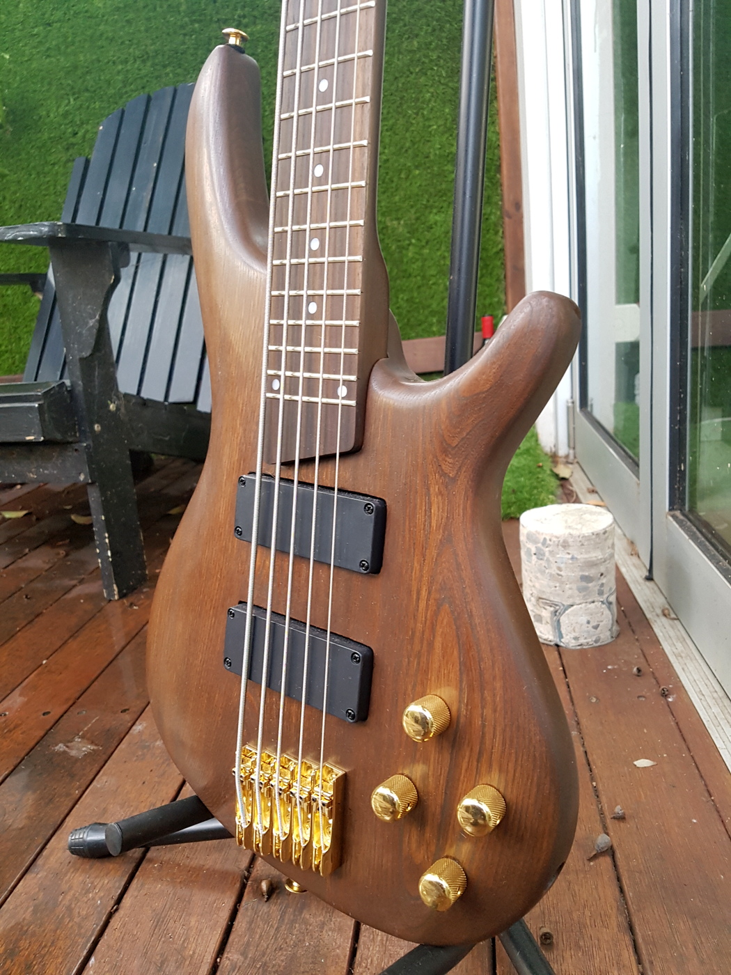 The stock Chinese units that come with all these kits tone wise usually don't sound too bad but their output is way lower, and when on the Ric if I was ever gigging with them as backups it would require me to continually adjust the volume after each axe swap. Onstage Bass volume is hard to control at the best of times and I can only imagine things getting way too loud as the night grows longer.