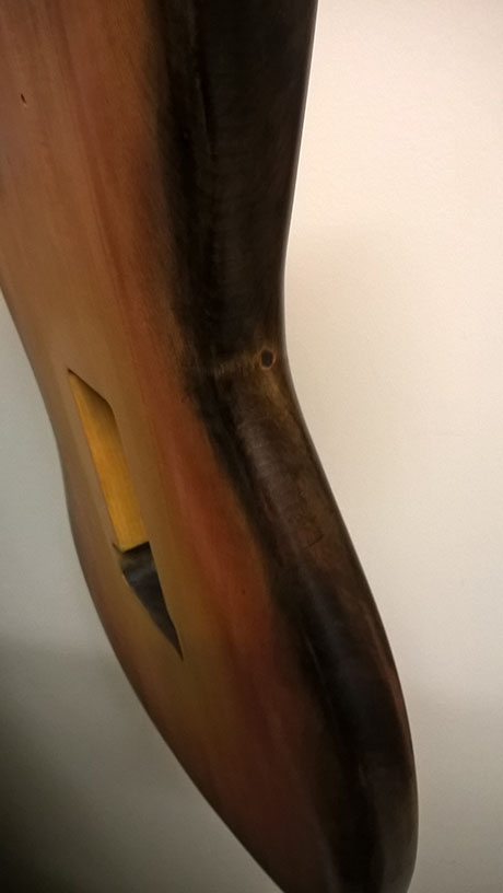 Gratuitous body shots. There hasn't been much change except for another coat of stain over the edge I sanded back, it's about the same level of gloss as the rest of the body now.