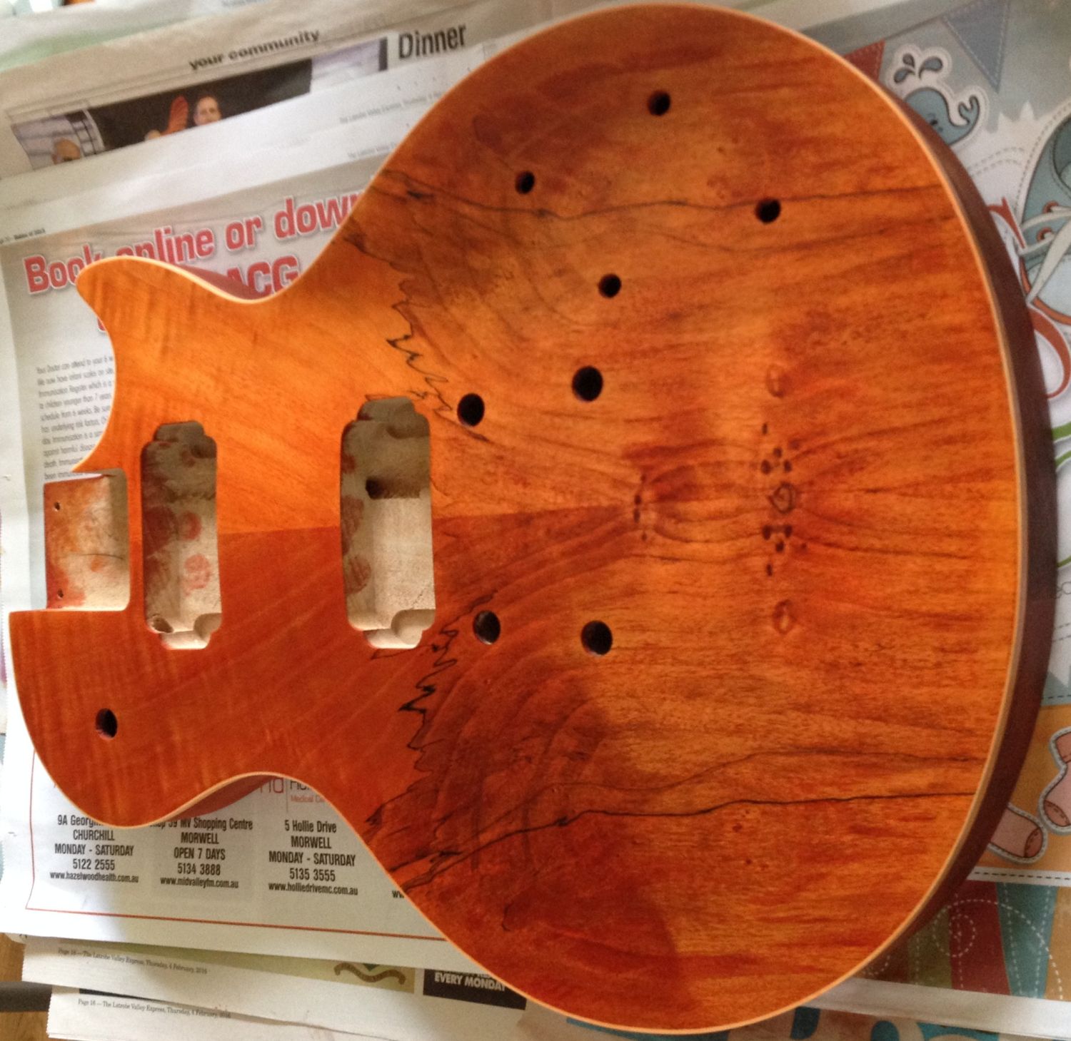 Wow, that spalted LP body is looking great Hugh, are you going to finish the neck in the same colour?