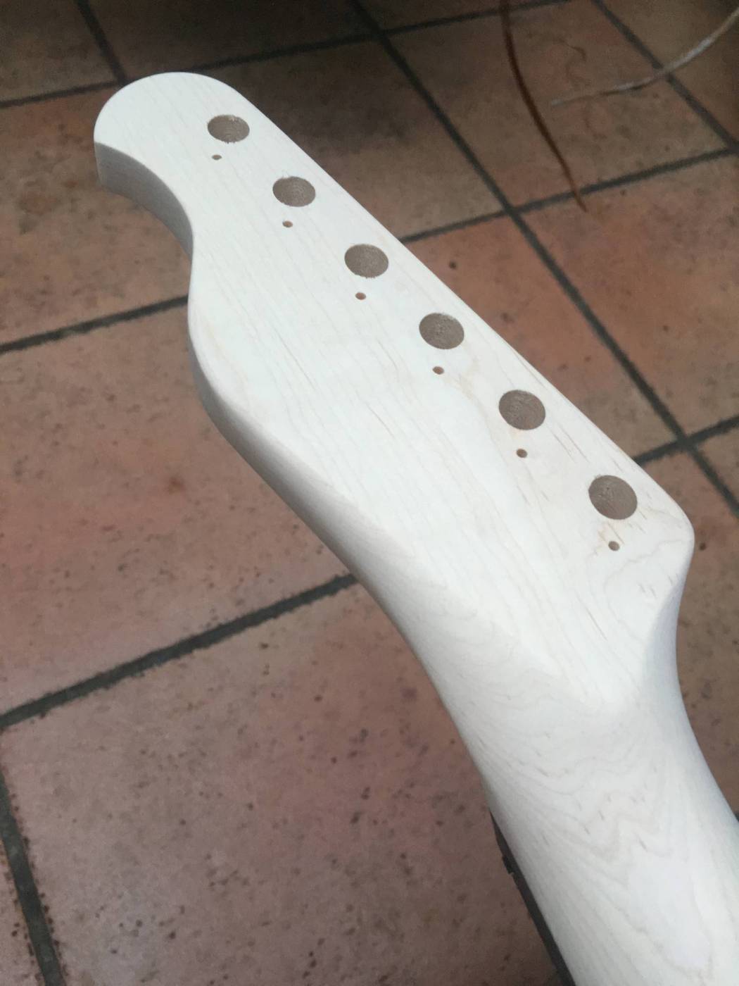 Time for the sanding to start, so from 80 grit up to 320 and the resulting headstock is looking good: